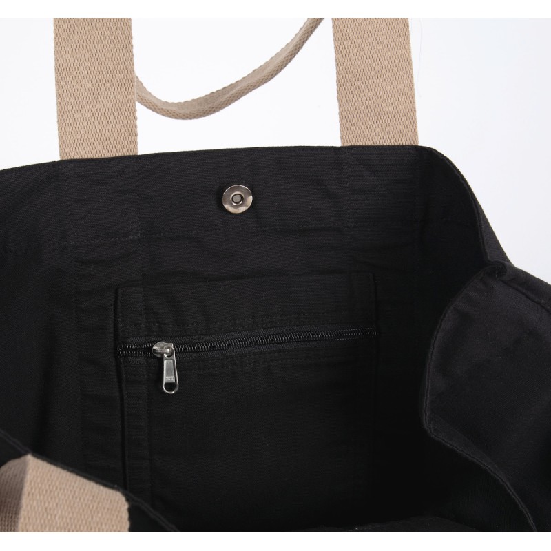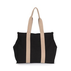 67% coton recyclé / 30% polyester recyclé / 3% autres fibres (Black Night), 75% coton recyclé / 22% polyester recyclé / 3% autres fibres (Ecume). Les anses de couleurs contrastées cousues tout le long du corps du sac apportent une touche d'originalité et une plus grand résistance. Le sac possède une poche intérieure avec fermeture zippée pour ranger en toute sécurité clés et téléphone. Fermeture à bouton magnétique.