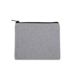 70% coton / 25% polyester/ 5% autres fibres. Trousse réalisée à partir de fil de matières recyclées. Le sac est cousu main avec des métiers à tisser traditionnels du Bangladesh, appelé "Tant". Le tissage traditionnel donne un aspect artisanal particulier et unique à la toile. Ce sac s'inscrit dans la collection "Handloom recycled project" issue d'une collaboration entre la marque Kimood et la société HandTouch, membre de ECOTA : Organisation par le commerce equitable au Bangladesh. Cet article contribue à soutenir l'économie des familles vivant dans les villages reculés du Bangladesh, et surtout favorise le travail des femmes évitant ainsi la désertification de ces villages. Les anses cousues tout le long du corps du sac sont fabriquées à partir de la même toile que le sac. À l'intérieur du sac, se trouve une étiquette détaillant le projet et proposant aussi un espace de personnalisation pour apposer logos et/ou messages.