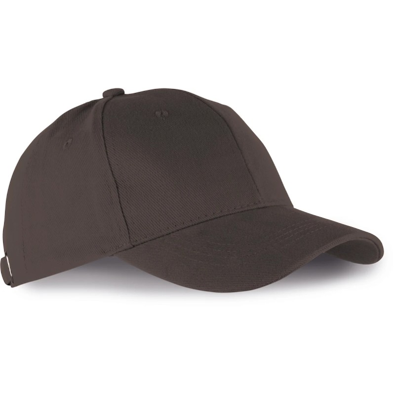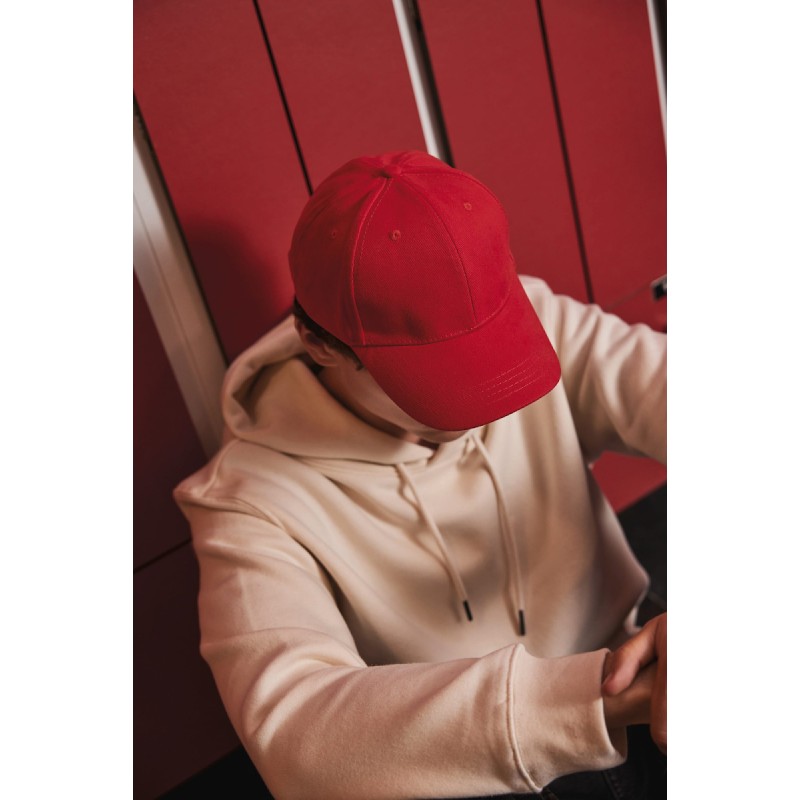 100% coton. Coton peigné. Casquette 6 panneaux. Fermeture arrière avec boucle métallique.