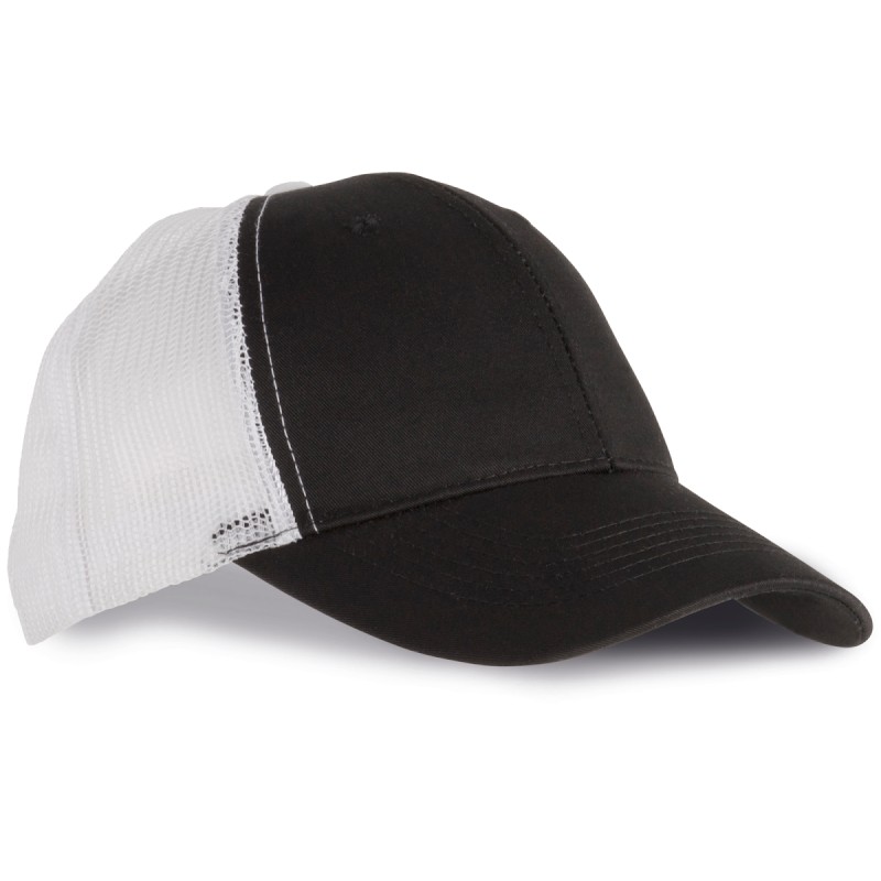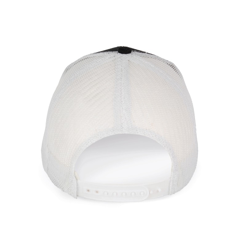 65% coton / 35% polyester. Casquette trucker 6 panneaux avec visière mi-profil et panneaux avant renforcé ton sur ton.