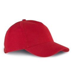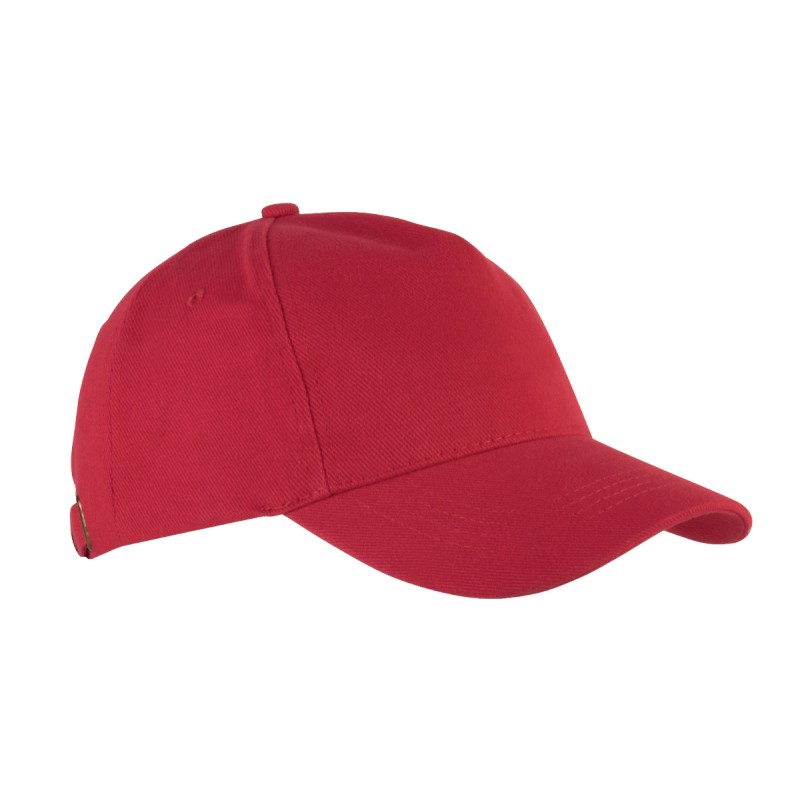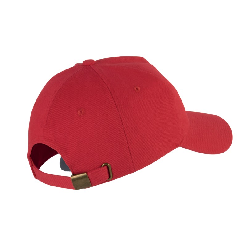 100% coton. Coton peigné épais. Casquette 5 panneaux. Fermeture arrière avec boucle métallique.