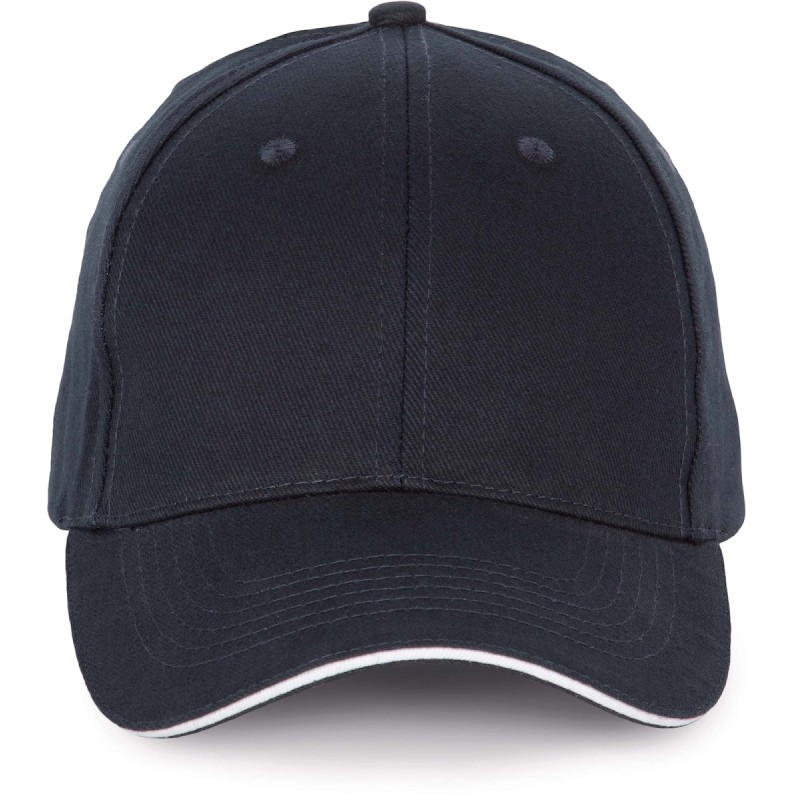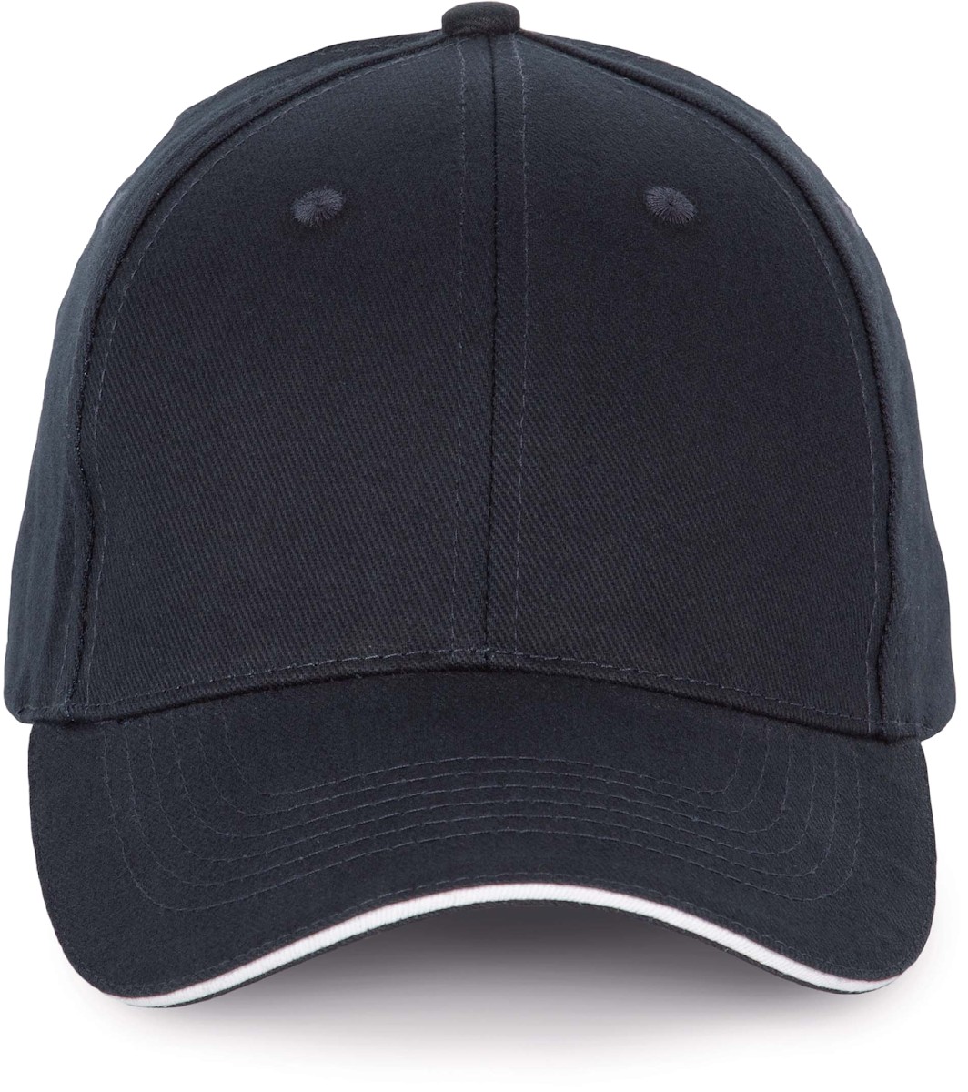 100% coton. Casquette 6 panneaux avec sandwich contrasté. Fermeture réglable par boucle métallique avec passant auto-bloquant.