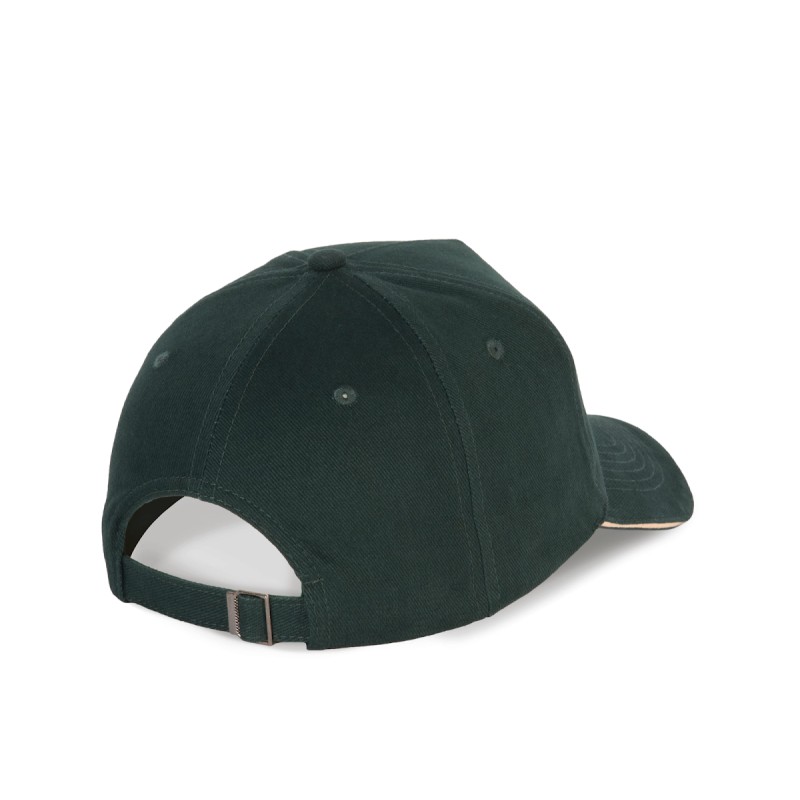 100% coton. Casquette 5 panneaux. Fermeture réglable par boucle métallique avec passant auto-bloquant.