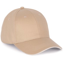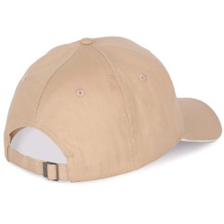 100% coton. Casquette 6 panneaux avec sandwich contrasté. Fermeture réglable par boucle métallique avec passant autobloquant.