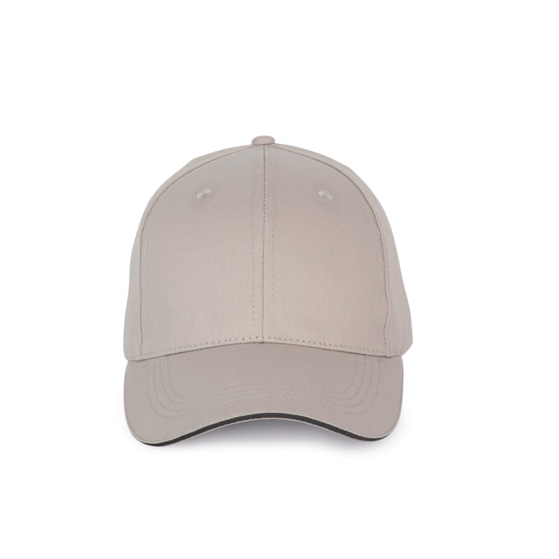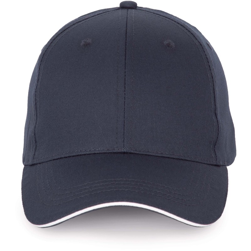 100% coton. Casquette 6 panneaux avec sandwich contrasté. Fermeture réglable par boucle métallique avec passant autobloquant.