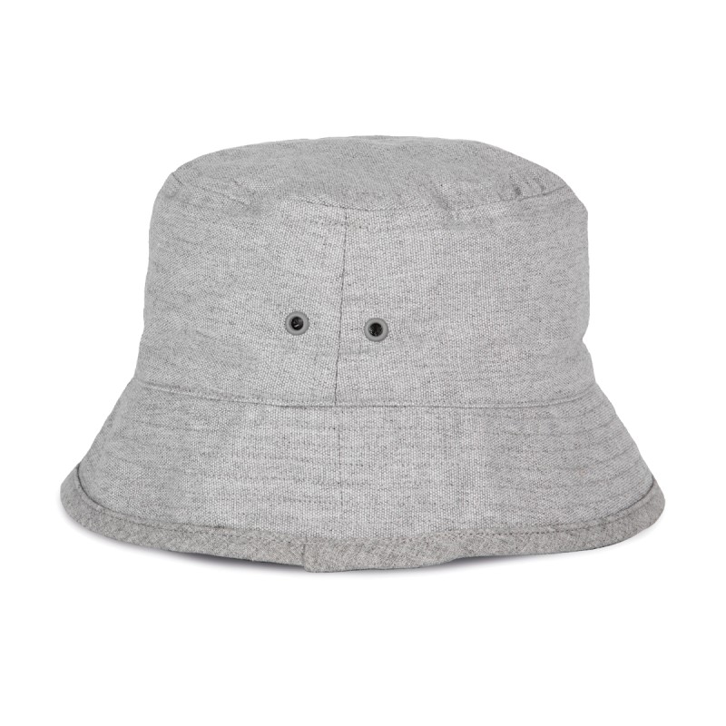 Bob avec œillets métalliques. Ce bob fait partie du projet "K-loop". Le coton utilisé provient des chutes de fabrication des vêtements en coton de la marque Kariban, et de la gamme KARIBAN BRANDS. Le polyester ajouté provient du recyclage de bouteilles plastique. Durant le processus de recyclage, il est ajouté au fil des traceurs qui font office d’empreinte digitale unique.