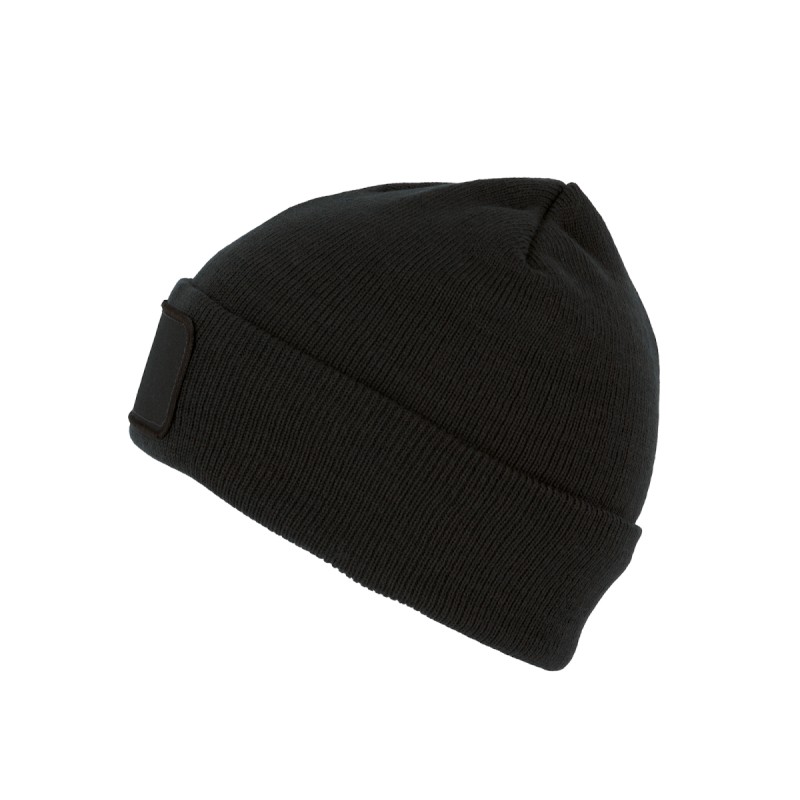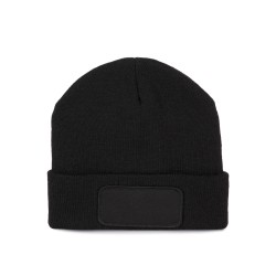 50% polyester recyclé / 50% acrylique. Bonnet à revers tricoté. Doublure polaire en Thinsulate™ très confortable. Patch en coton sur le devant pour une personnalisation facile. Etiquette de marque Tear Away.