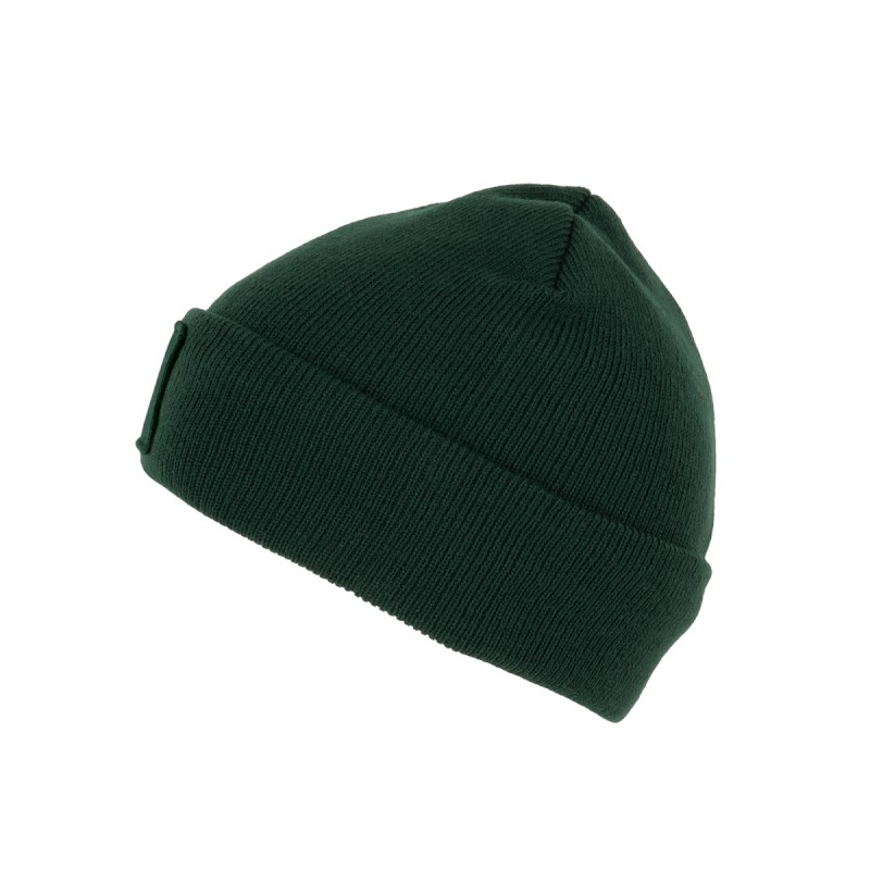 50% polyester recyclé / 50% acrylique. Bonnet à revers tricoté. Doublure polaire en Thinsulate™ très confortable. Patch en coton sur le devant pour une personnalisation facile. Etiquette de marque Tear Away.