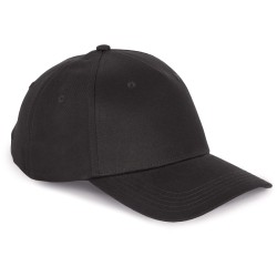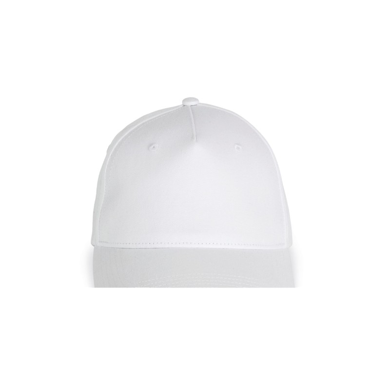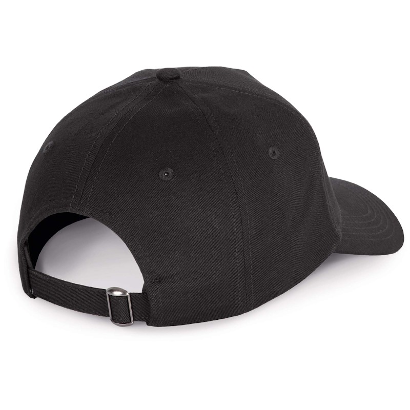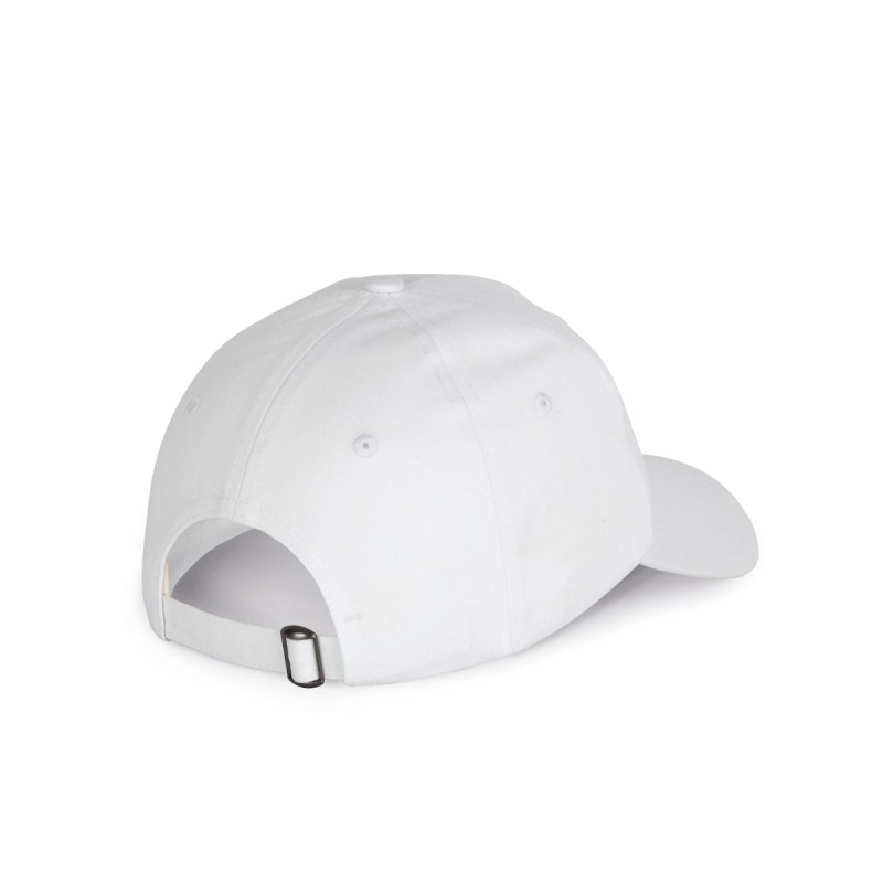 100% coton. Casquette 5 panneaux composée de 60% de coton recyclé pré-consumer et 40% de coton vierge. Boucle d'ajustement en métal située à l'arrière de la casquette.
