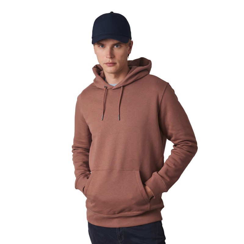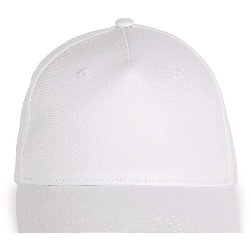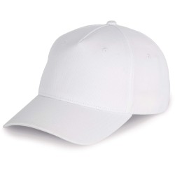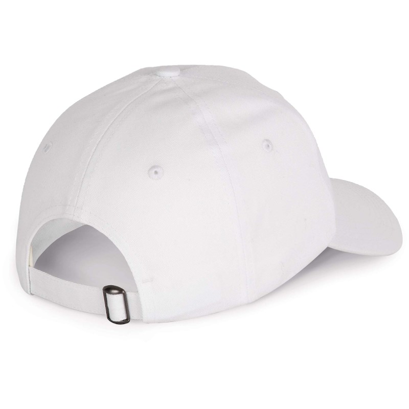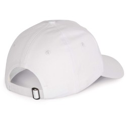 100% coton. Casquette 5 panneaux composée de 60% de coton recyclé pré-consumer et 40% de coton vierge. Boucle d'ajustement en métal située à l'arrière de la casquette.