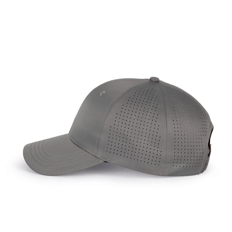 100% polyester recyclé. Les 4 panneaux arrières sont microperforés au laser pour garantir une excellente ventilation et respirabilité. Visière incurvée et fermeture par bande auto-agrippante.