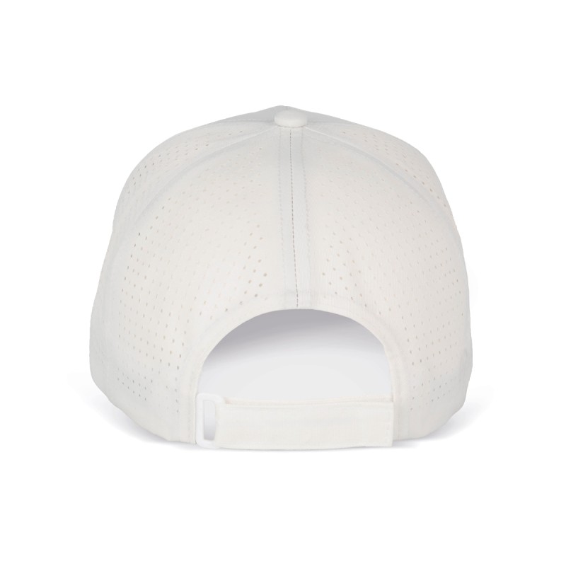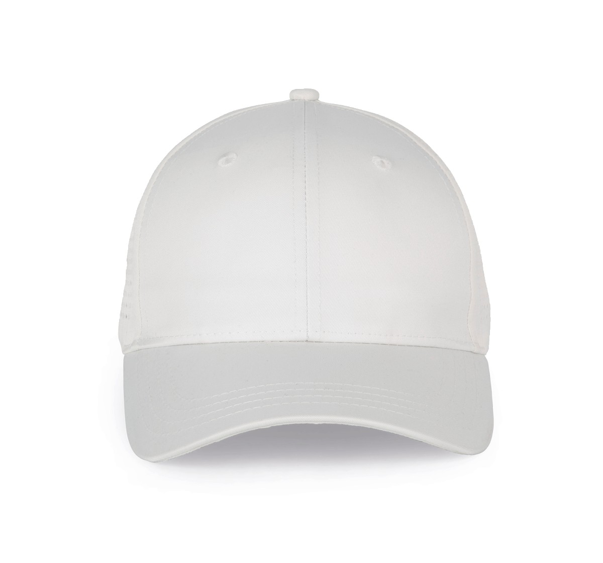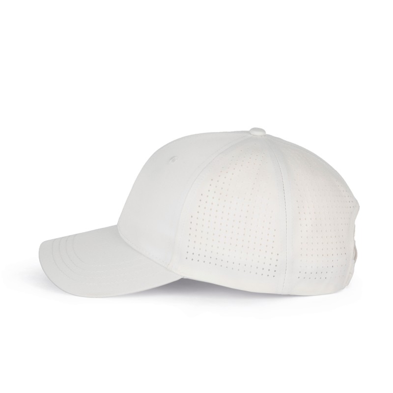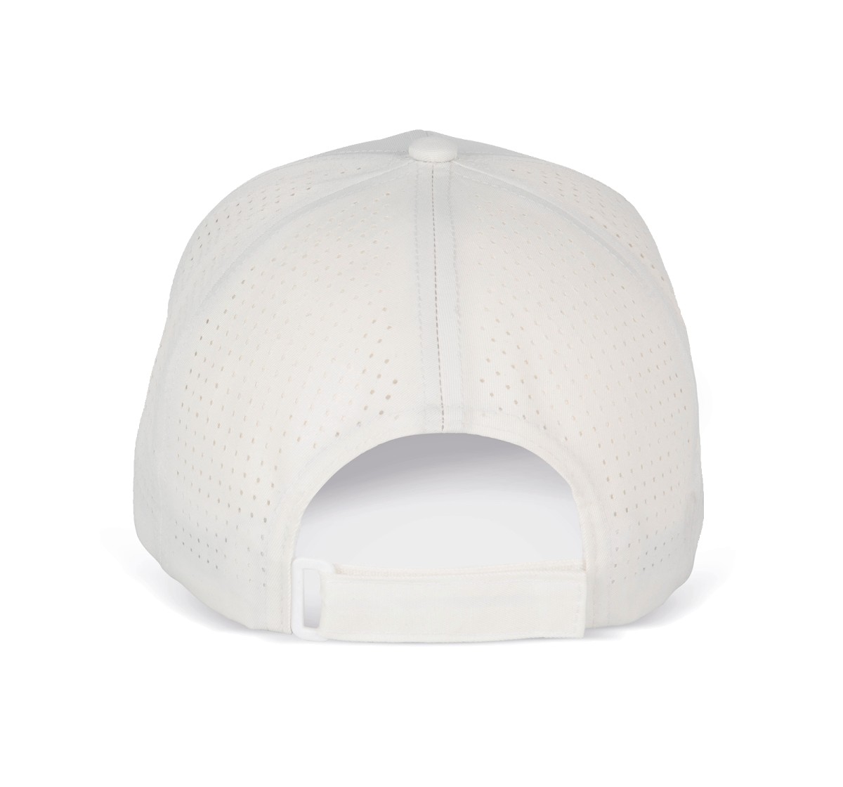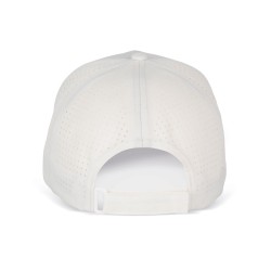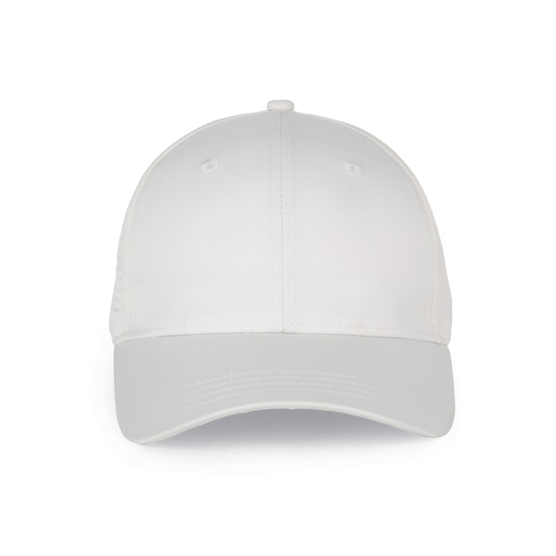 100% polyester recyclé. Les 4 panneaux arrières sont microperforés au laser pour garantir une excellente ventilation et respirabilité. Visière incurvée et fermeture par bande auto-agrippante.