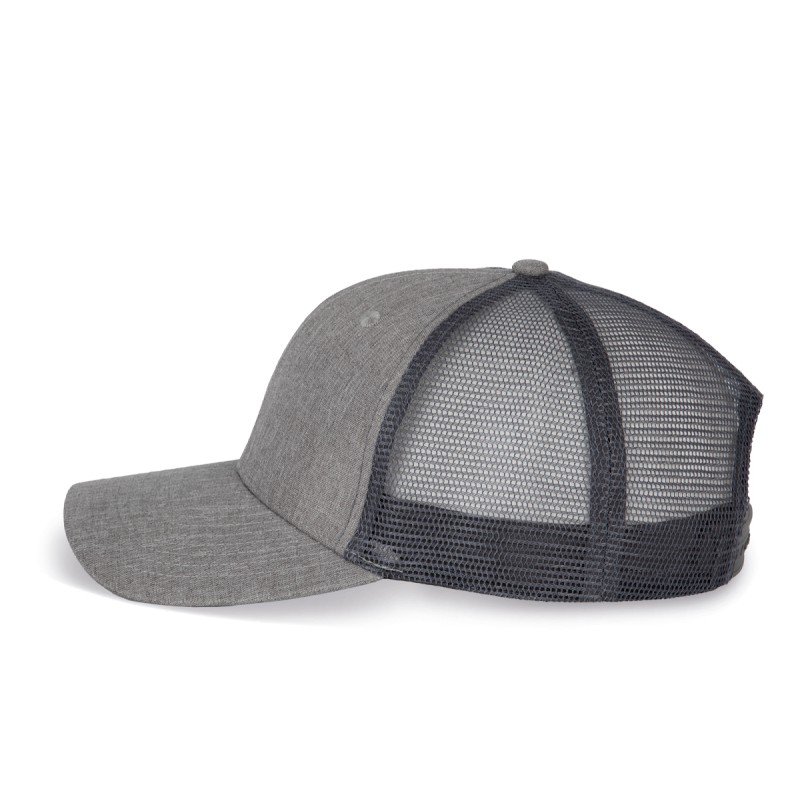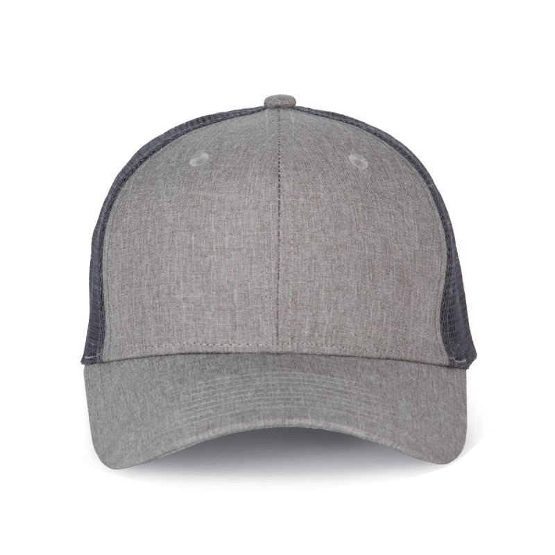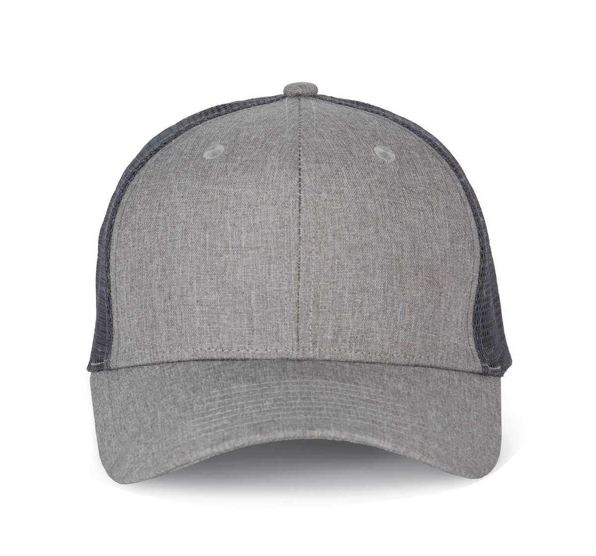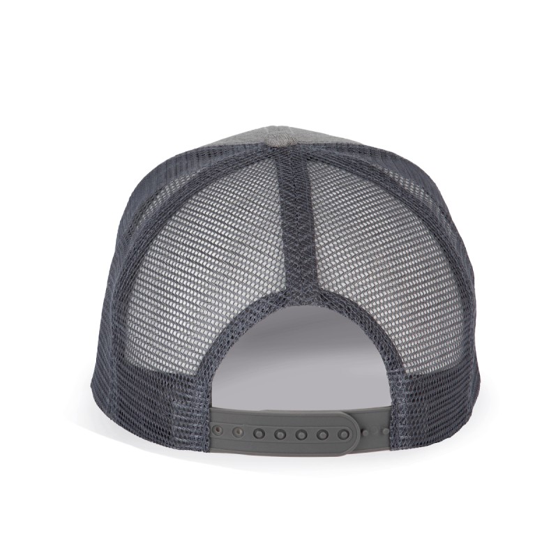 100% polyester recyclé. Modèle Trucker avec fermeture Snapback. Panneaux frontaux en polyester Oxford. Maille en polyester recyclé.