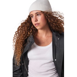100% Polylana® (50% polyester recyclé / 50% polyester). Bonnet avec revers. La fibre de Polylana® est une matière aussi douce et agréable au toucher que la laine, alternative à l'acrylique et caractérisée par un faible impact environnemental, dont la production nécessite moins d’énergie, d’eau et d’émissions de CO2. Le fil de Polylana® est certifié Impact Aware™, en garantissant, sur l’ensemble de la filière de production, un produit 100% transparent et intègre, avec possibilité, via la plate-forme de blockchain Aware™, de vérifier l'authenticité de la fibre de Polylana®. Une étiquette spéciale avec un QR code permet d’accéder à la plate-forme Aware™ et d’authentifier directement les certifications via un simple smartphone.