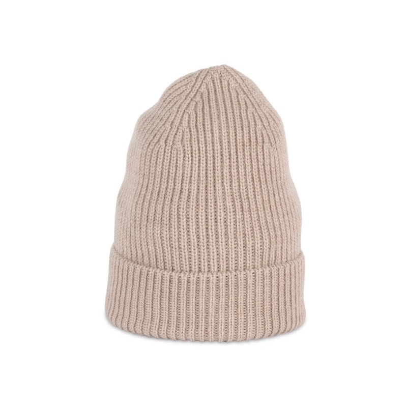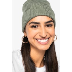 100% laine mérinos responsable RWS (Responsible Wool Standard). Fabrication Espagne. Fil peigné. Jauge 10. Tricotage en côte 1 x 1. Matière douce et chaude. Bonnet à large revers. Poids moyen : 75 g.