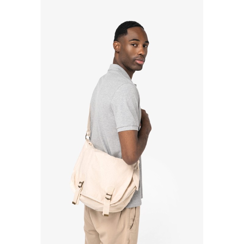 100% coton biologique. Extérieur : 100% coton biologique. Doublure : 67% coton recyclé pre-consumer / 30% polyester recyclé post-consumer / 3% autres fibres. ONE SIZE (15 x 29 x 30cm). Capacité : 13L. Tissu canevas. Poche à pince sur le côté pour donner de l’aisance. Fermeture par boutons aimantés avec boucles décoratives. Poche à l’arrière avec pression. Anse bandoulière attenante réglable. Poche intérieure avec zip en nylon recyclé. Sangles et bords contrastés couleur ton sur ton. Produit lavé après montage : les couleurs peuvent légèrement varier d'une pièce à l'autre. Ce produit est susceptible de déteindre au contact avec des surfaces ou vêtements clairs.