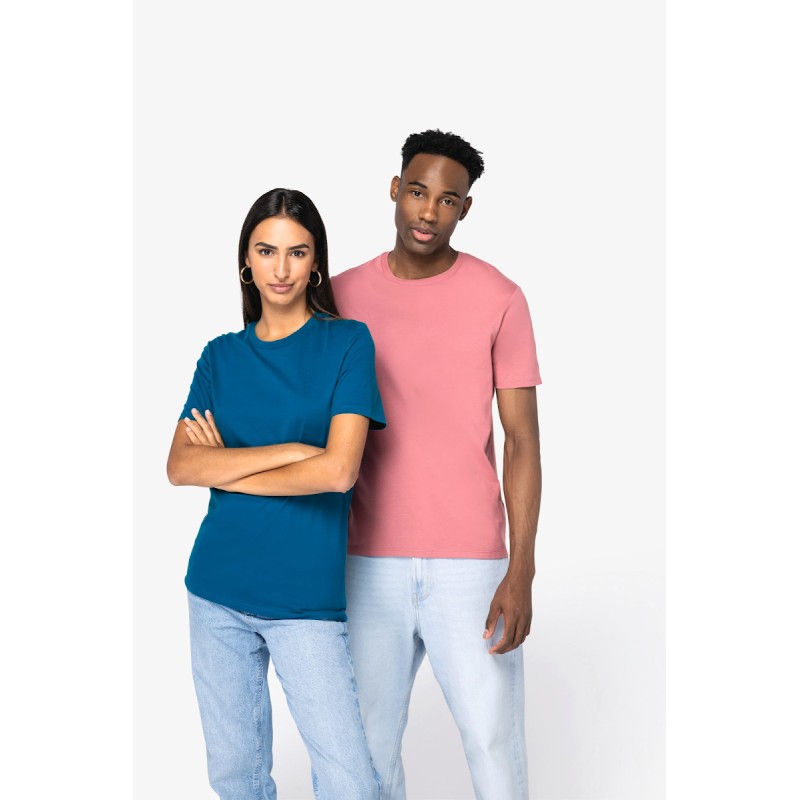 100% coton biologique. Coton peigné. Coupe ajustée. Coutures latérales. Lavé aux enzymes. Bord côte col 1 x 1. Ourlet double surpiqûre bas de manches et bas de vêtement. Renfort épaule en matière principale. La couleur Raw Natural se distingue par son aspect brut visuellement texturé, parsemée de fines particules visibles à l’œil nu.