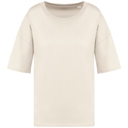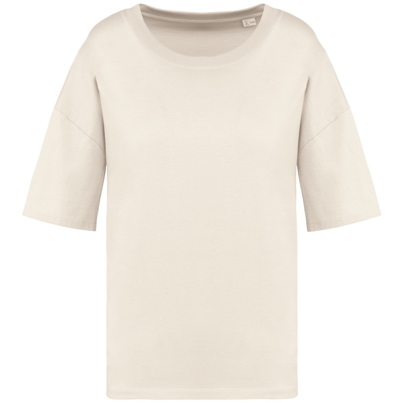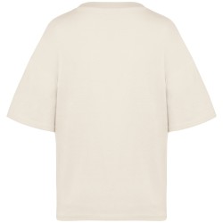 100% coton biologique. Coton peigné ringspun. Coupe oversize à épaules tombantes. Coutures latérales. Bord côte col 1 x 1 et surpiqûre nervurée. Bande de propreté intérieure col en matière principale. Ourlet double surpiqûre bas de manches et bas de vêtement.