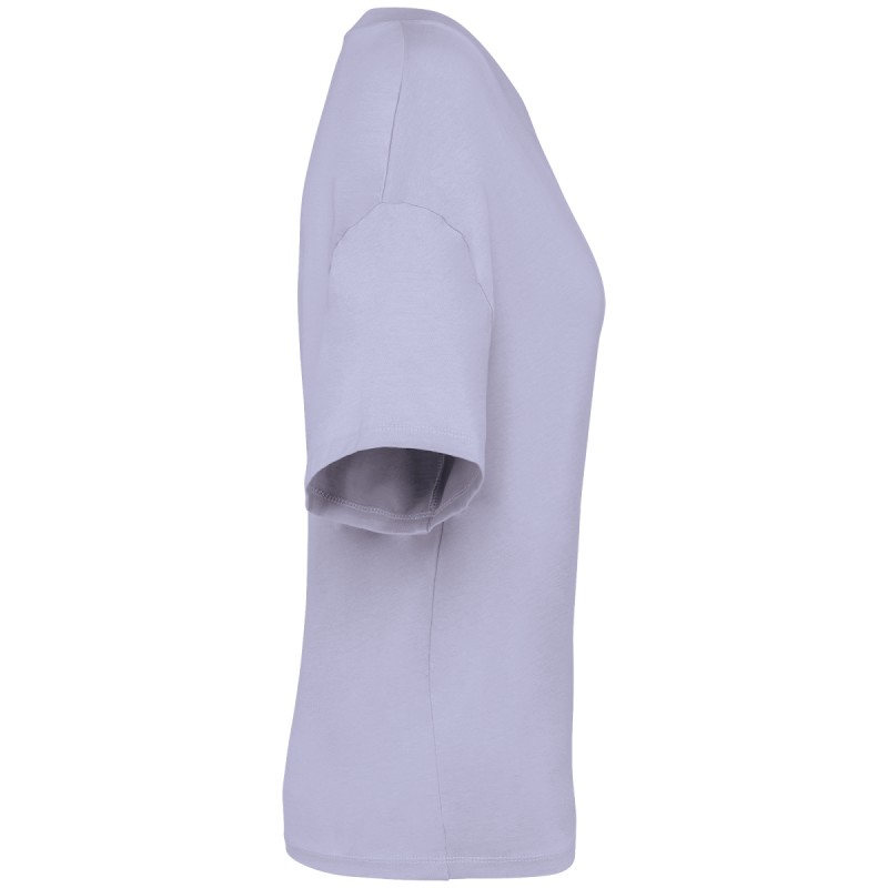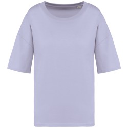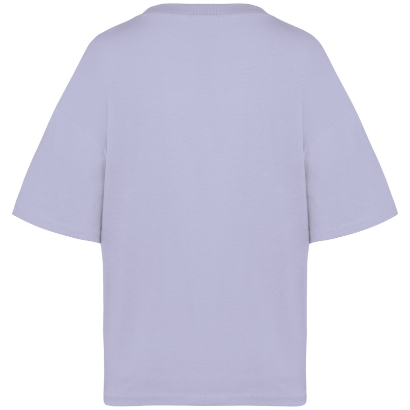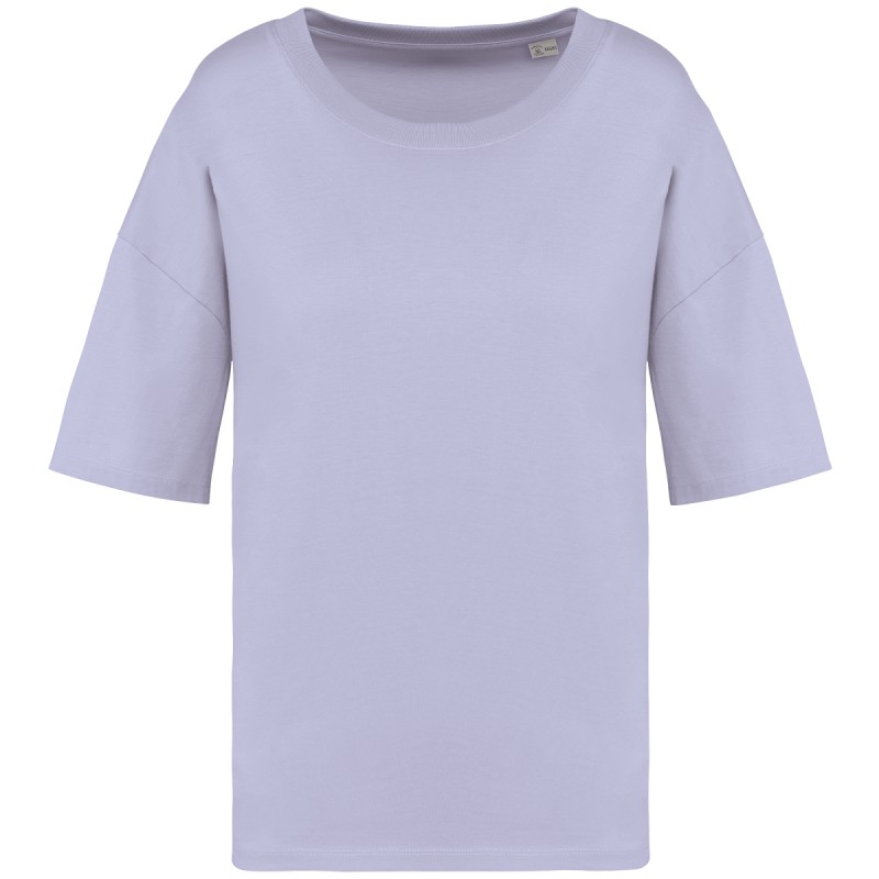 100% coton biologique. Coton peigné ringspun. Coupe oversize à épaules tombantes. Coutures latérales. Bord côte col 1 x 1 et surpiqûre nervurée. Bande de propreté intérieure col en matière principale. Ourlet double surpiqûre bas de manches et bas de vêtement.