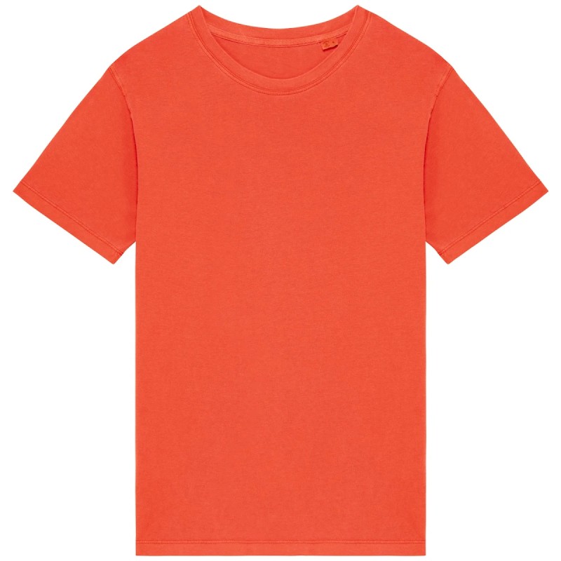 100% coton biologique. Coton peigné ringspun. Coupe droite. Coutures latérales. Lavé aux enzymes. Bord côte col 1 x 1. Bande de propreté intérieure col en chevrons. Double surpiqûre aux emmanchures, épaules et encolure. Ourlet double surpiqûre bas de manches et bas de vêtement. Vêtement teint après montage : les couleurs peuvent légèrement varier d’une pièce à l’autre. Ce produit est susceptible de déteindre aucontact avec des surfaces ou vêtements clairs.