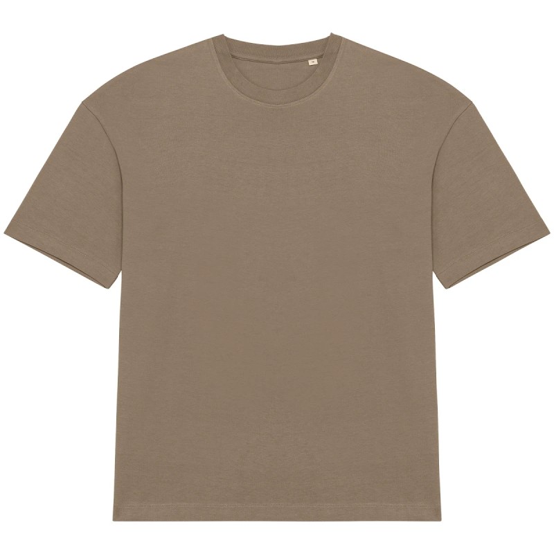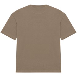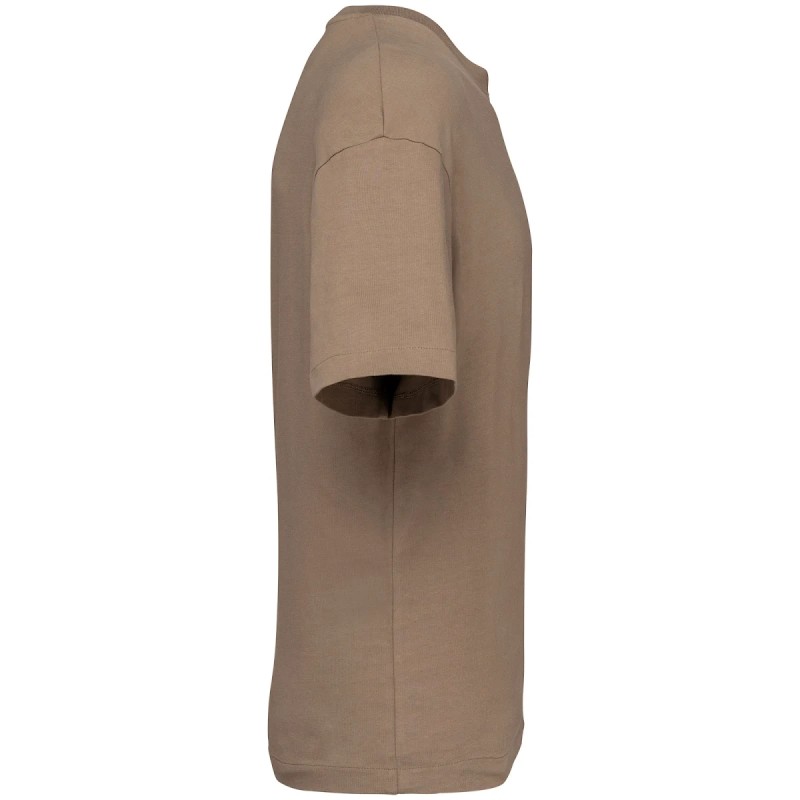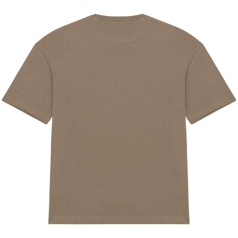 100% coton biologique. Coton cardé. Coupe oversize à épaules tombantes. Coutures latérales. Toucher légèrement « rêche ». Bord côte col 1 x 1. Bande de propreté intérieure col en matière principale. Ourlet simple surpiqûre bas de manches et bas de vêtement.