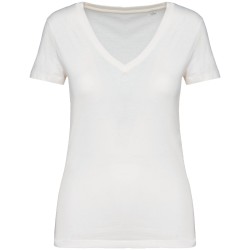 100% coton biologique. Coton peigné ringspun. Coupe ajustée. Lavé aux enzymes. Col V. Coutures latérales. Bord côte col 1 x 1. Bande de propreté en jersey ton sur ton à l’encolure. Ourlet double surpiqûre bas de manches et bas de vêtement. La couleur Raw Natural se distingue par son aspect brut visuellement texturé, parsemée de fines particules visibles à l’œil nu.