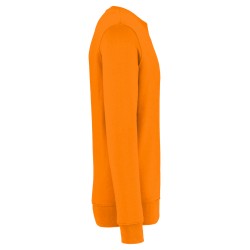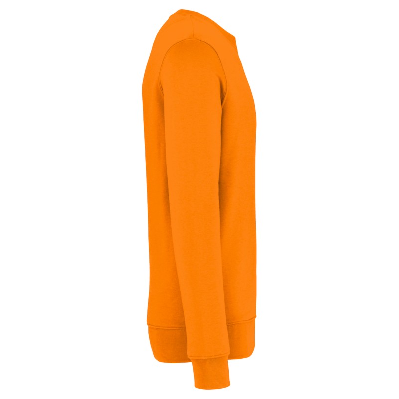 85% coton biologique / 15% polyester recyclé post-consumer. Coton peigné ringspun. Coupe ajustée. Lavé aux enzymes. Molleton gratté 3 fils LSF (Low Shrinkage Fleece : molleton pré-rétréci). 1/2 lune dans le dos. Bord cote 1 x 1 encolure, bas de vêtement et bas de manches. Double surpiqûre bas de manches, emmanchures, bas de vêtement. Simple surpiqûre à l’encolure. Bande de propreté intérieur encolure dos. La couleur Raw Natural se distingue par son aspect brut visuellement texturé, parsemée de fines particules visibles à l’œil nu.