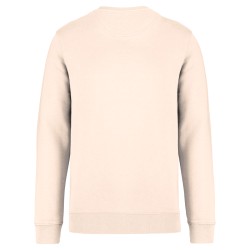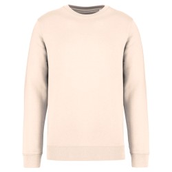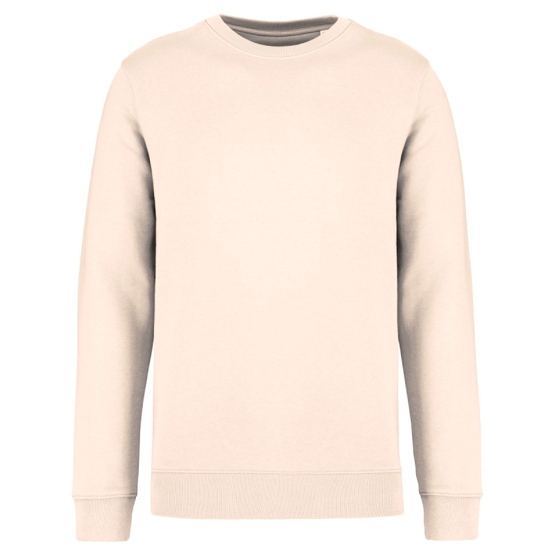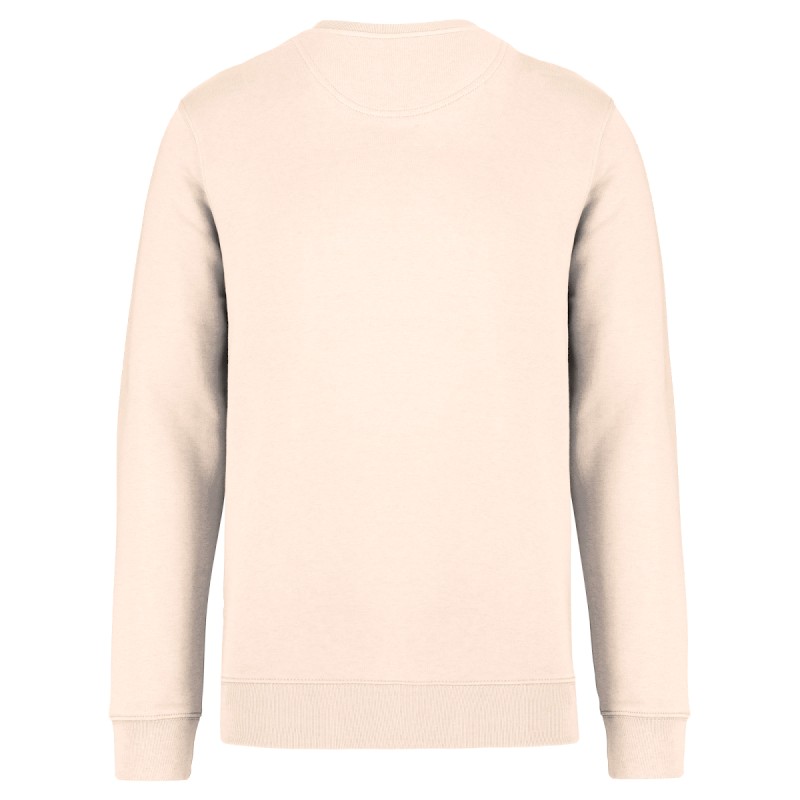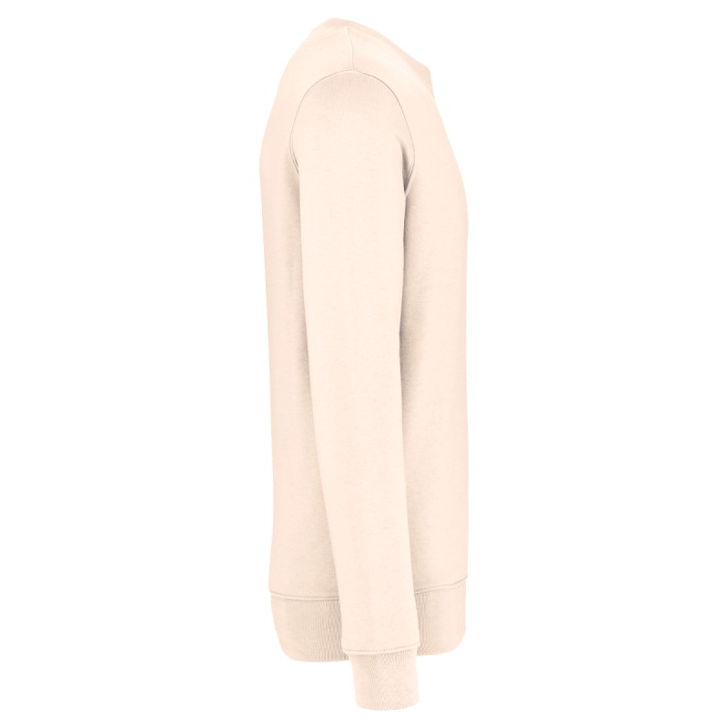 85% coton biologique / 15% polyester recyclé post-consumer. Coton peigné ringspun. Coupe ajustée. Lavé aux enzymes. Molleton gratté 3 fils LSF (Low Shrinkage Fleece : molleton pré-rétréci). 1/2 lune dans le dos. Bord cote 1 x 1 encolure, bas de vêtement et bas de manches. Double surpiqûre bas de manches, emmanchures, bas de vêtement. Simple surpiqûre à l’encolure. Bande de propreté intérieur encolure dos. La couleur Raw Natural se distingue par son aspect brut visuellement texturé, parsemée de fines particules visibles à l’œil nu.