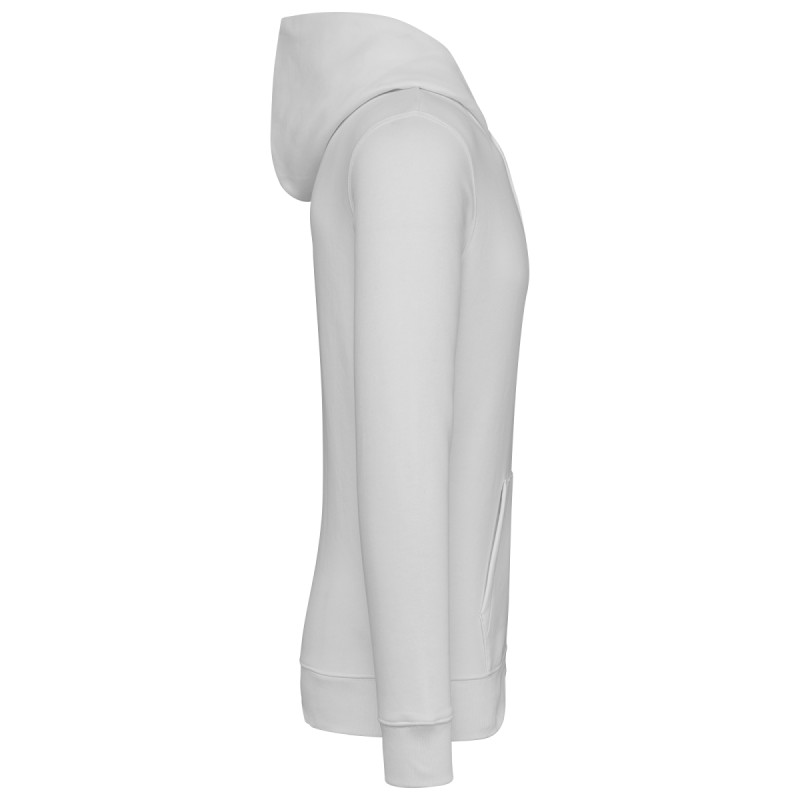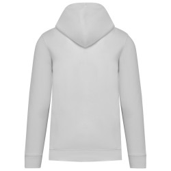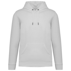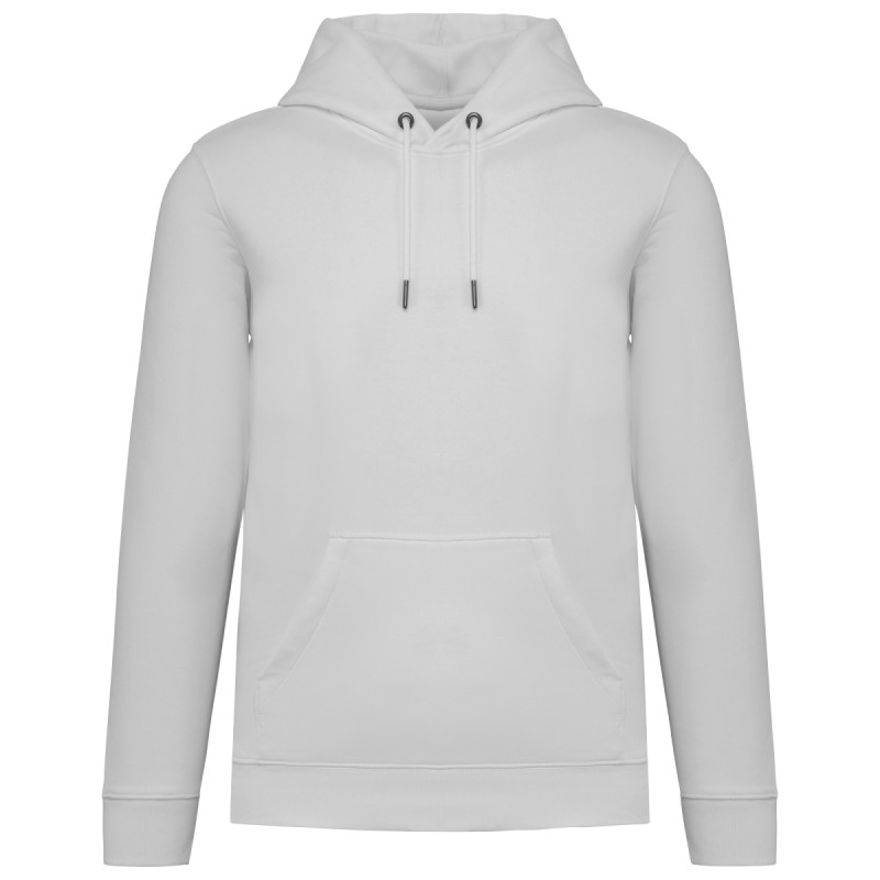 85% coton biologique / 15% polyester recyclé post-consumer. Coton peigné ringspun. Coupe ajustée. Lavé aux enzymes. Molleton gratté 3 fils LSF (Low Shrinkage Fleece : molleton pré-rétréci). 1/2 lune au dos. Poche kangourou. Bord cote 1 x 1 bas de vêtement et bas de manches. Double surpiqûre bas de manches, emmanchures, bas de vêtement et 1/2 lune. Bande de propreté intérieur encolure dos. Capuche doublée en matière principale avec point d’arrêt cordon. Cordon rond avec embouts et oeillets en métal recyclé. La couleur Raw Natural se distingue par son aspect brut visuellement texturé, parsemée de fines particules visibles à l’œil nu.
