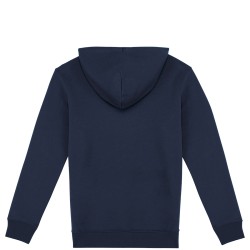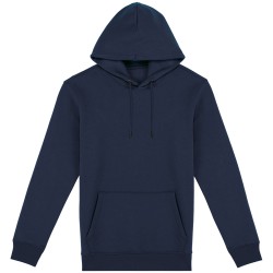 85% coton biologique / 15% polyester recyclé post-consumer. Coton peigné ringspun. Coupe ajustée. Lavé aux enzymes. Molleton gratté 3 fils LSF (Low Shrinkage Fleece : molleton pré-rétréci). 1/2 lune au dos. Poche kangourou. Bord cote 1 x 1 bas de vêtement et bas de manches. Double surpiqûre bas de manches, emmanchures, bas de vêtement et 1/2 lune. Bande de propreté intérieur encolure dos. Capuche doublée en matière principale avec point d’arrêt cordon. Cordon rond avec embouts et oeillets en métal recyclé. La couleur Raw Natural se distingue par son aspect brut visuellement texturé, parsemée de fines particules visibles à l’œil nu.