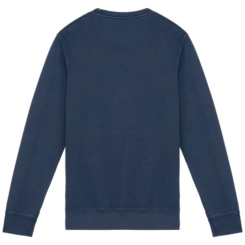 100% coton biologique. Fabriqué au Portugal. Coton peigné ringspun. Coupe ajustée. Lavé aux enzymes. Intérieur molleton non gratté (French Terry). 1/2 lune au dos. Point de recouvrement à l'encolure, aux emmanchures, aux bas de manches et de vêtement. Bord côte 1 x 1 manches, encolure et bas de vêtement. Encolure avec bande de propreté intérieure en chevrons. Vêtement teint après montage : les couleurs peuvent légèrement varier d'une pièce à l'autre.