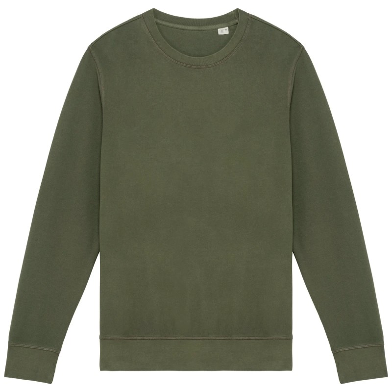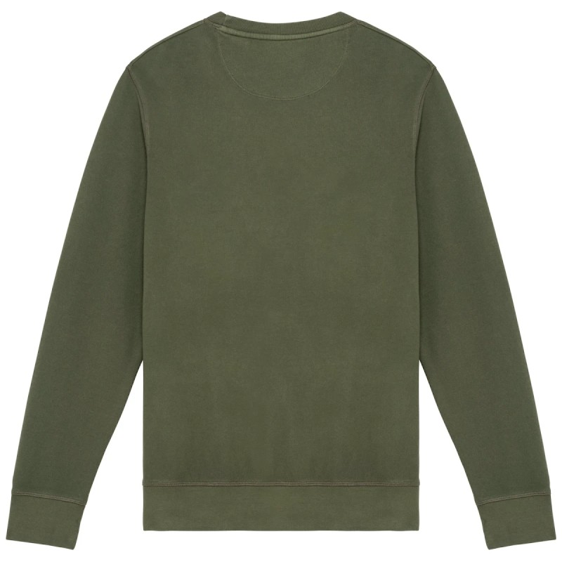 100% coton biologique. Fabriqué au Portugal. Coton peigné ringspun. Coupe ajustée. Lavé aux enzymes. Intérieur molleton non gratté (French Terry). 1/2 lune au dos. Point de recouvrement à l'encolure, aux emmanchures, aux bas de manches et de vêtement. Bord côte 1 x 1 manches, encolure et bas de vêtement. Encolure avec bande de propreté intérieure en chevrons. Vêtement teint après montage : les couleurs peuvent légèrement varier d'une pièce à l'autre.