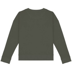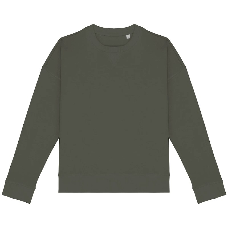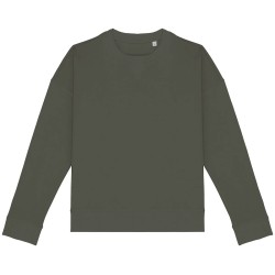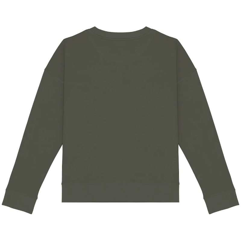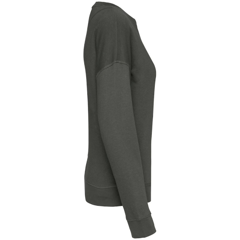 70% coton biologique / 30% modal TENCEL™.  Coton peigné ringspun. Coupe oversize avec épaules tombantes. Bord côte col 2 x 2. Bord côte 1 x 1 bas de vêtement et bas de manches. 1/2 lune au dos. Pointe de courtoisie en V au col. Flatlock à cheval sur encolure, bas de manches et bas de vêtement. Bande de propreté intérieure en chevrons. TENCEL™ est une marque de Lenzing AG.