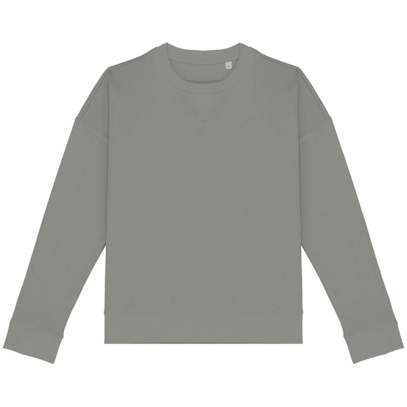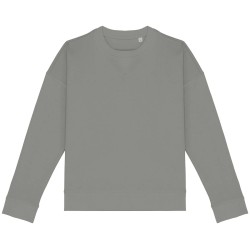 70% coton biologique / 30% modal TENCEL™. Coton peigné ringspun. Coupe oversize avec épaules tombantes. Bord côte col 2 x 2. Bord côte 1 x 1 bas de vêtement et bas de manches. 1/2 lune au dos. Pointe de courtoisie en V au col. Flatlock à cheval sur encolure, bas de manches et bas de vêtement. Bande de propreté intérieure en chevrons. TENCEL™ est une marque de Lenzing AG.