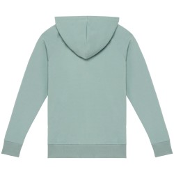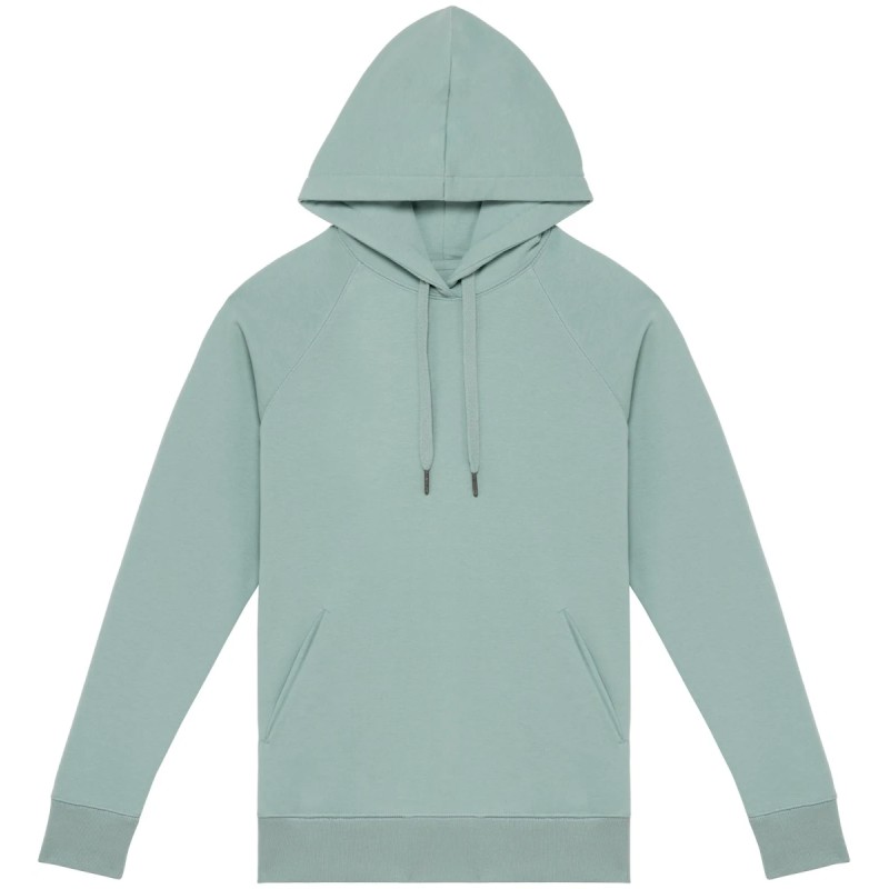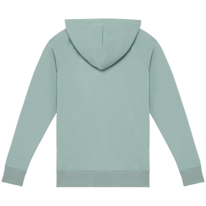 65% coton biologique / 35% polyester recyclé post-consumer. Coton peigné ringspun. Coupe confort avec manches raglan. Molleton gratté 3 fils LSF (Low Shrinkage Fleece : molleton pré-retréci). Lavé aux enzymes. Point de recouvrement aux emmanchures, sur le côté, bas de vêtement et bas de manches. Deux poches côtés. Capuche doublée en matière principale. 1/2 lune au dos. Cordons plats avec embouts en métal recyclé. Encolure avec bande de propreté intérieure en jersey. Bord côte 1 x 1.