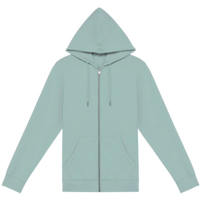 48% modal TENCEL™ / 47% coton biologique / 5% élasthane. Coupe ajustée. Toucher ultra doux. 1/2 lune au dos. 2 poches kangourou. Zip en métal recyclé. Capuche doublée en matière principale avec cordon rond embout métal recyclé. Encolure avec bande de propreté intérieure en matière principale. Point de recouvrement aux poignets, emmanchures, sur la capuche et le bas de vêtement. TENCEL™ est une marque de Lenzing AG.