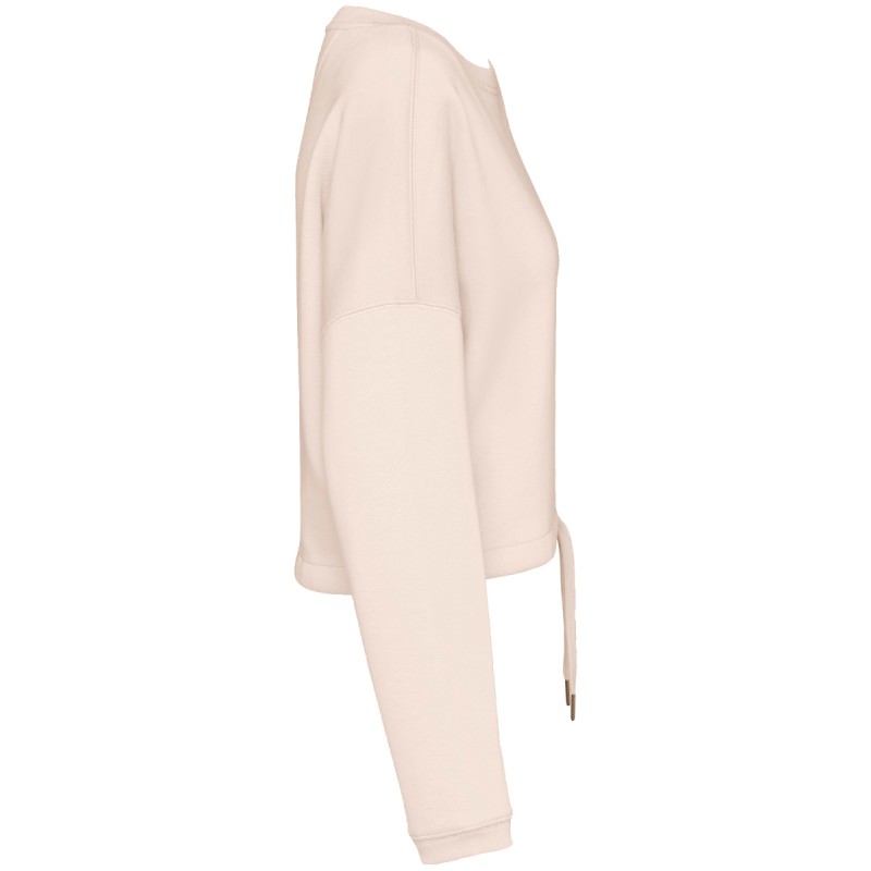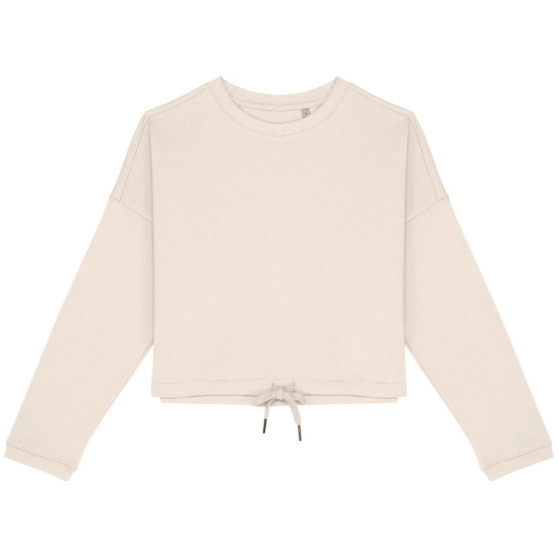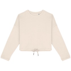 65% coton biologique / 35% polyester recyclé post-consumer. Coton peigné. Coupe oversize à épaules tombantes. Molleton gratté 3 fils LSF (Low Shrinkage Fleece : molleton pré-rétréci). 1/2 lune au dos. Lavé aux enzymes. Cordon de serrage plats en coton biologique bas de vêtement avec embouts en métal recyclé. Point de recouvrement à l’encolure, coutures épaules, emmanchures et bas de manches. Bord côte 2 x 1 au col et bas de manches. Encolure avec bande de propreté intérieure en chevrons.