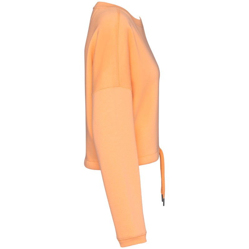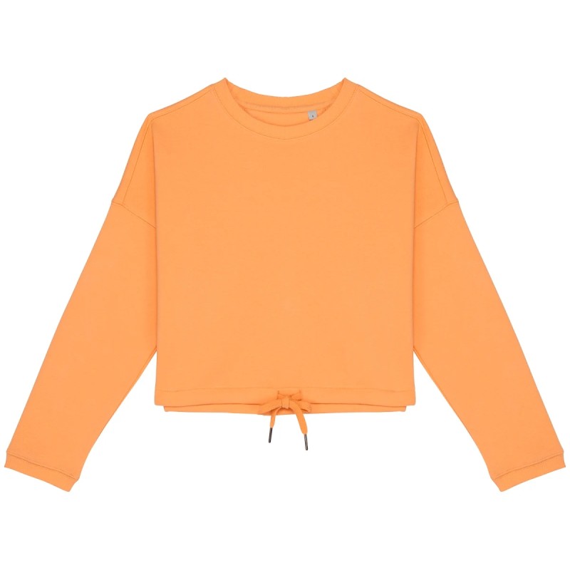 65% coton biologique / 35% polyester recyclé post-consumer. Coton peigné. Coupe oversize à épaules tombantes. Molleton gratté 3 fils LSF (Low Shrinkage Fleece : molleton pré-rétréci). 1/2 lune au dos. Lavé aux enzymes. Cordon de serrage plats en coton biologique bas de vêtement avec embouts en métal recyclé. Point de recouvrement à l’encolure, coutures épaules, emmanchures et bas de manches. Bord côte 2 x 1 au col et bas de manches. Encolure avec bande de propreté intérieure en chevrons.