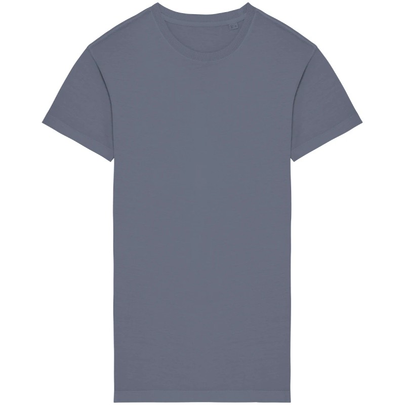 100% coton biologique. Coton peigné ringspun. Coupe droite et épaules tombantes. Coutures latérales. Lavé aux enzymes. Bord côte col 2 x 1. Bande de propreté intérieure col en chevrons. Double surpiqure aux emmanchures, épaules et encolure. Ourlet double surpiqûre bas de manches et bas de vêtement. Vêtement teint après montage : les couleurs peuvent légèrement varier. Ce produit est susceptible de déteindre au contact avec des surfaces ou vêtements clairs.