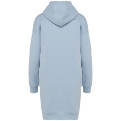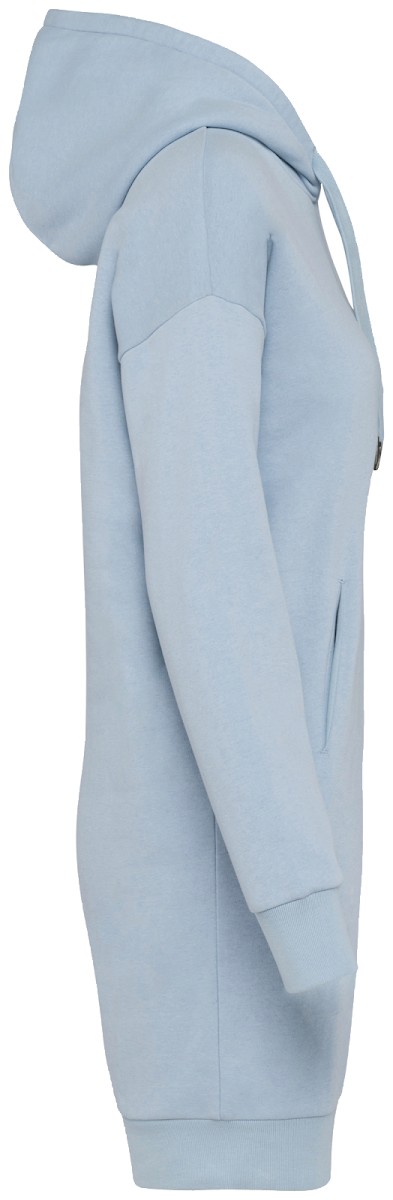 65% coton biologique / 35% polyester recyclé post-consumer. Coton peigné ringspun. Coupe confort avec épaules tombantes. Molleton gratté 3 fils LSF (Low shrinkage Fleece : molleton pré-rétréci). 1/2 lune au dos. Lavé aux enzymes. Capuche doublée en matière principale. Cordons plats avec embouts en métal recyclé. Deux poches minimalistes. Bord côte 1 x 1 bas de vêtement et bas de manches.