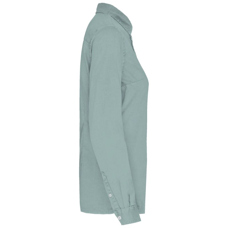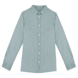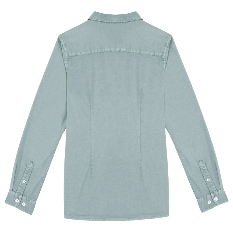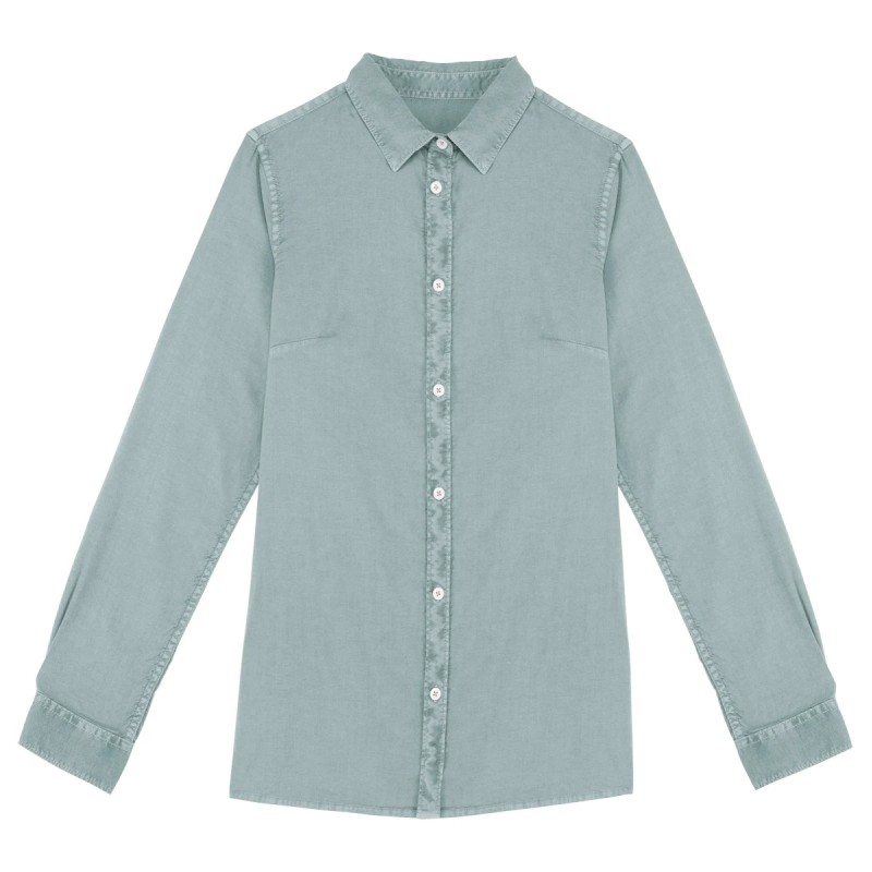 100% coton biologique. Coton peigné. Coupe ajustée. Patte de boutonnage classique avec boutons effet nacré. Empiècement dos « pli rond » décontracté. Patte de manche en pointe « capucin » boutonnée.