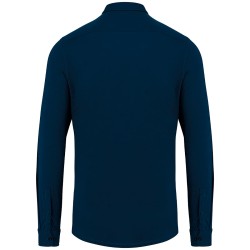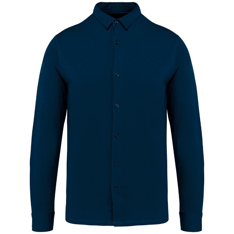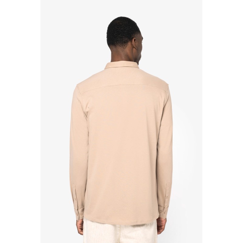 100% coton biologique. Jersey simple. Coupe ajustée. Lavé aux enzymes. Col en matière principale avec pied de col. Bande de propreté intérieure en jersey ton sur ton. Patte de boutonnage avant avec boutons recyclés ton sur ton effet nacré. Patte capucin aux poignets avec boutonnage. Coutures latérales simple piqure. Empiècement haut du dos. Ourlet double surpiqûre bas de vêtement. Bas de vêtement arrondi.
