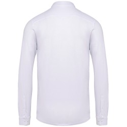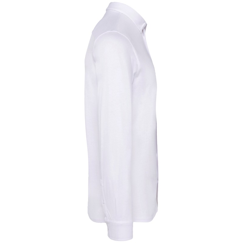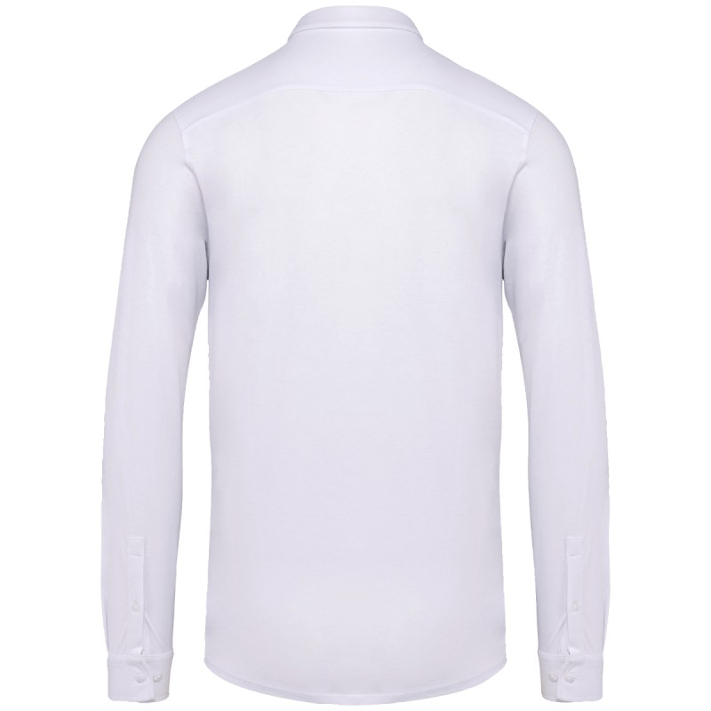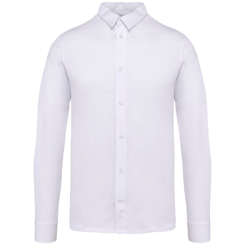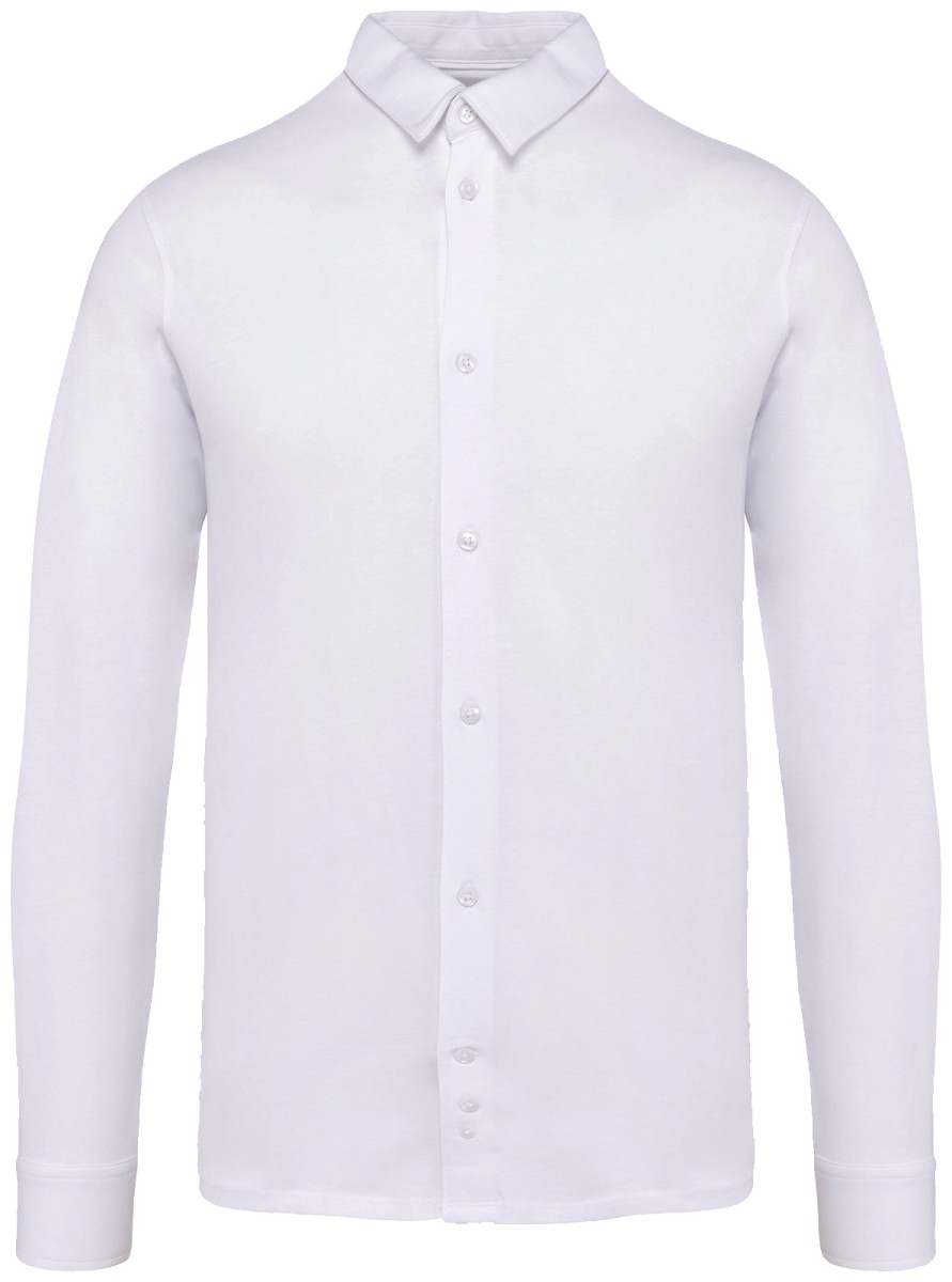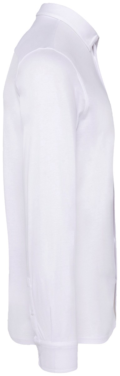 100% coton biologique. Jersey simple. Coupe ajustée. Lavé aux enzymes. Col en matière principale avec pied de col. Bande de propreté intérieure en jersey ton sur ton. Patte de boutonnage avant avec boutons recyclés ton sur ton effet nacré. Patte capucin aux poignets avec boutonnage. Coutures latérales simple piqure. Empiècement haut du dos. Ourlet double surpiqûre bas de vêtement. Bas de vêtement arrondi.