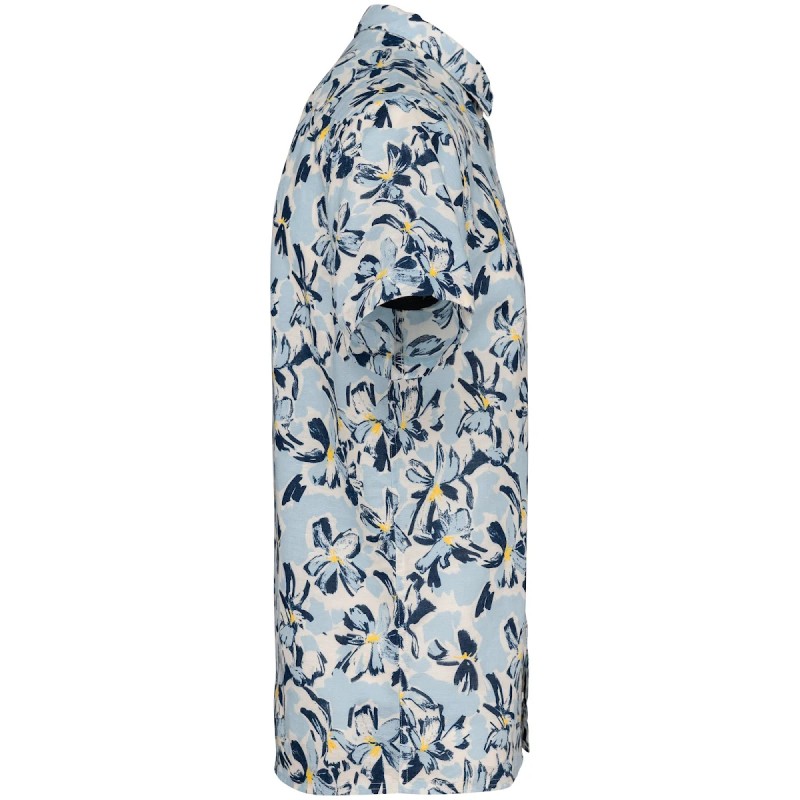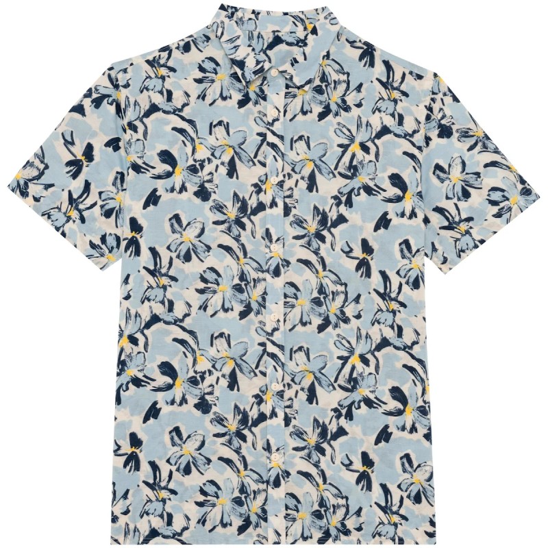 62% lin / 38% coton biologique. Tissé. Coupe ajustée. Coutures latérales. Col chemise avec pied de col. Patte de boutonnage rapportée avec boutons contrastés. Empiècement dos doublé. Tissage aux motifs imprimés continus. Epaule et dessous de manches avec double surpiqûre. Ourlet double surpiqûres bas de manches et de vêtement. Vêtement lavé après montage : les couleurs peuvent varier d'un produit à l'autre.