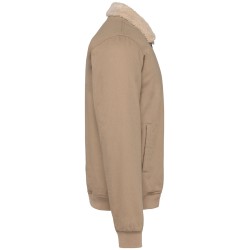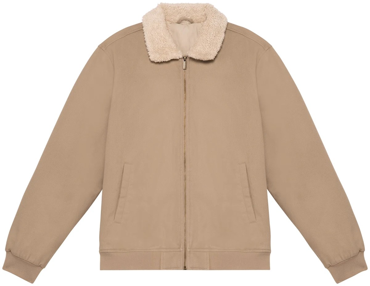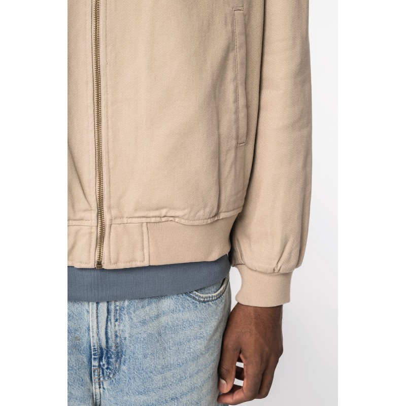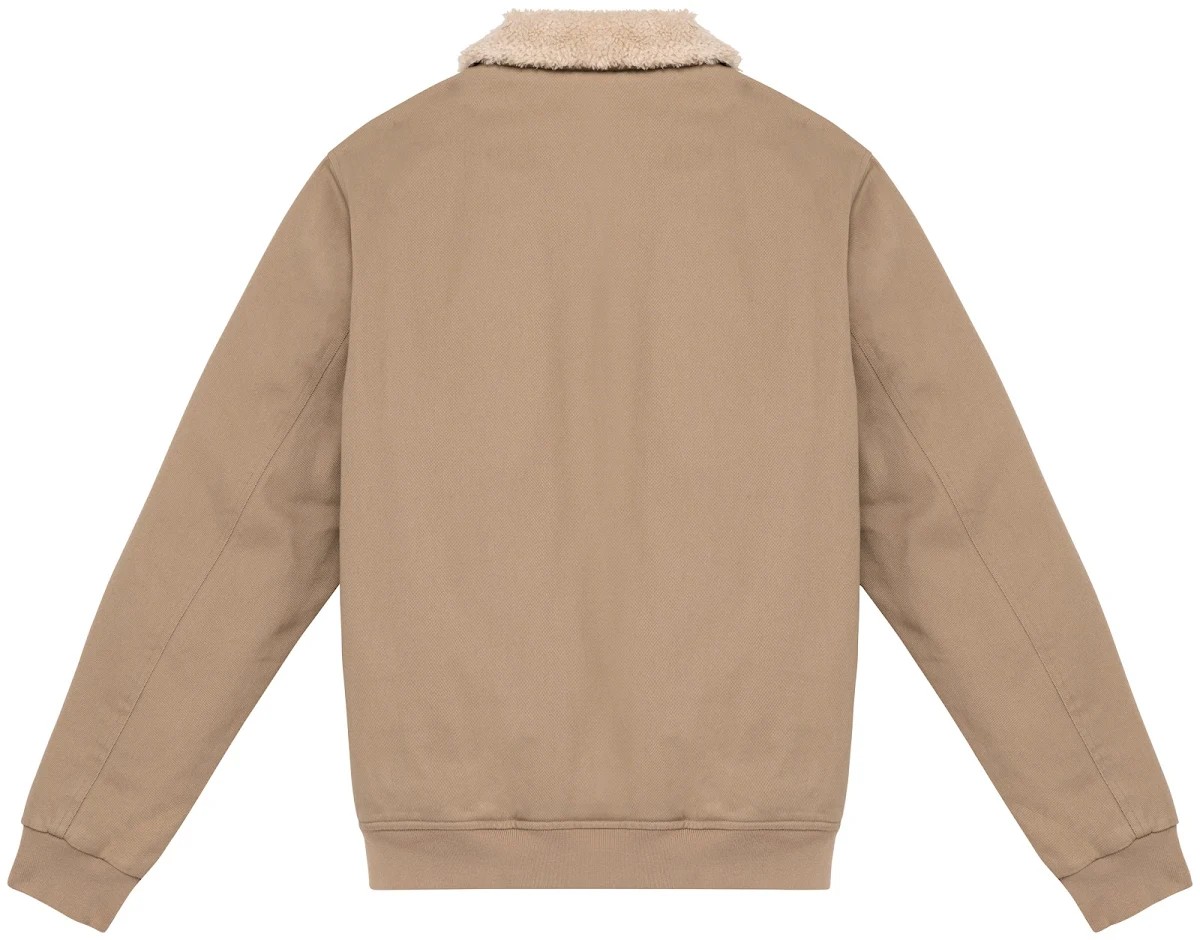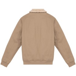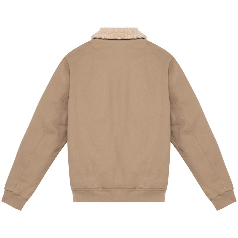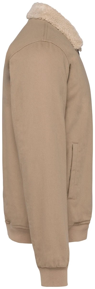 100% coton biologique. Coton twill. Patch de personnalisation intérieur col. Produit lavé. 2 poches devant. Zip en métal recyclé. Extérieur du col et doublure du corps en Sherpa en polyester recyclé post-consumer. Bord côte 1 x 1 bas de vêtement et bas de manches.