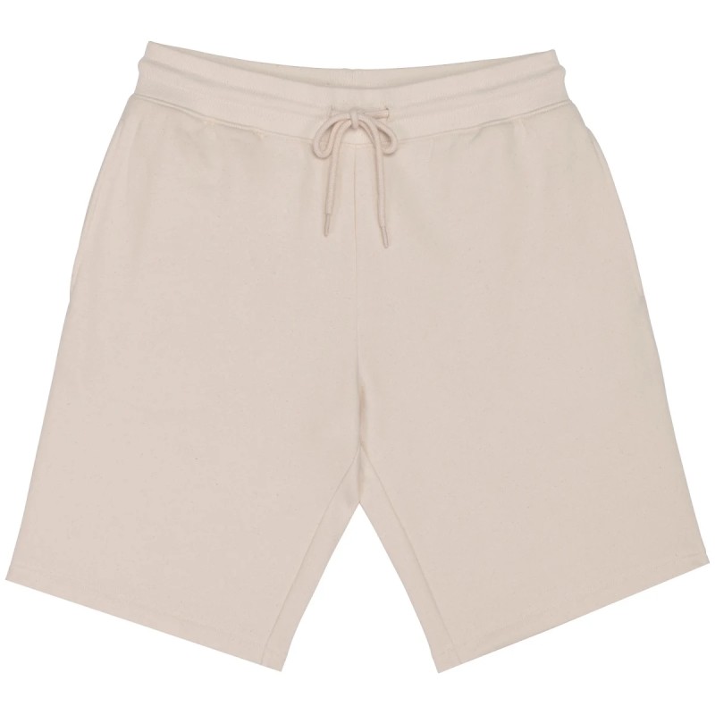 85% coton biologique / 15% polyester recyclé post-consumer. Coton peigné ringspun. Lavé aux enzymes. Molleton gratté 3 fils LSF (Low Shrinkage Fleece). Ceinture bord cote 1 x 1 avec cordon de serrage. OEillet boutonnière pour cordon ceinture. Poches côtés. 1 poche arrière passepoilée. Ourlet bas de jambes double surpiqûre. La couleur Raw Natural se distingue par son aspect brut visuellement texturé, parsemée de fines particules visibles à l’œil nu.