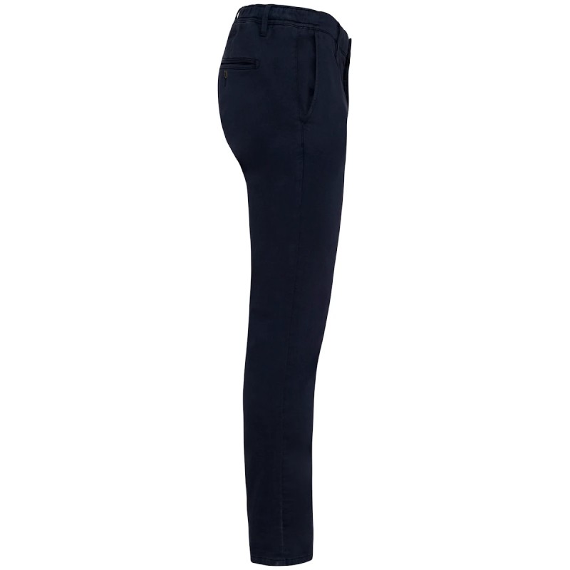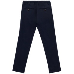 74% coton biologique / 25% coton conventionnel / 1% élasthanne. Matière stretch. Vêtement tissé avec effet intérieur French Terry. Finition toucher peau de pêche. Braguette patte de boutonnage, boutons en métal. Deux poches côtés. Ceinture demi élastiquée sur les côtés avec passants. Deux poches passepoilées au dos avec boutons en métal et coins renforcés. Deux cordons plats de serrage intérieur. Vêtement teint en pièce après montage : les couleurs peuvent varier d’un produit à un autre.  Ce produit est susceptible de déteindre au contact avec des surfaces ou vêtements clairs.