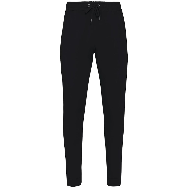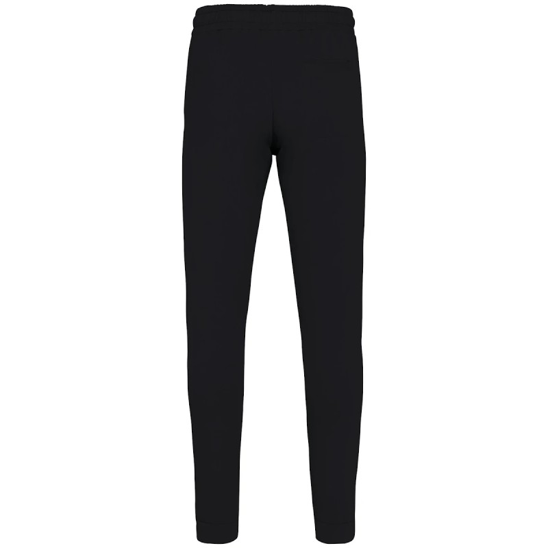 100% coton biologique. Fabriqué au Portugal. Coton peigné ringspun. Lavé aux enzymes. Intérieur molleton non gratté (French Terry). Deux poches latérales. Ceinture élastiquée avec cordon plat, œillets et embouts en métal recyclé. Bord côte 1 x 1 bas de jambes. Poches passepoilées avant et arrière. Vêtement teint après montage : les couleurs peuvent légèrement varier d'une pièce à l'autre.
