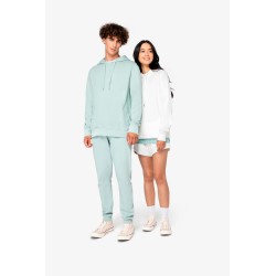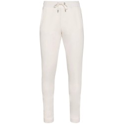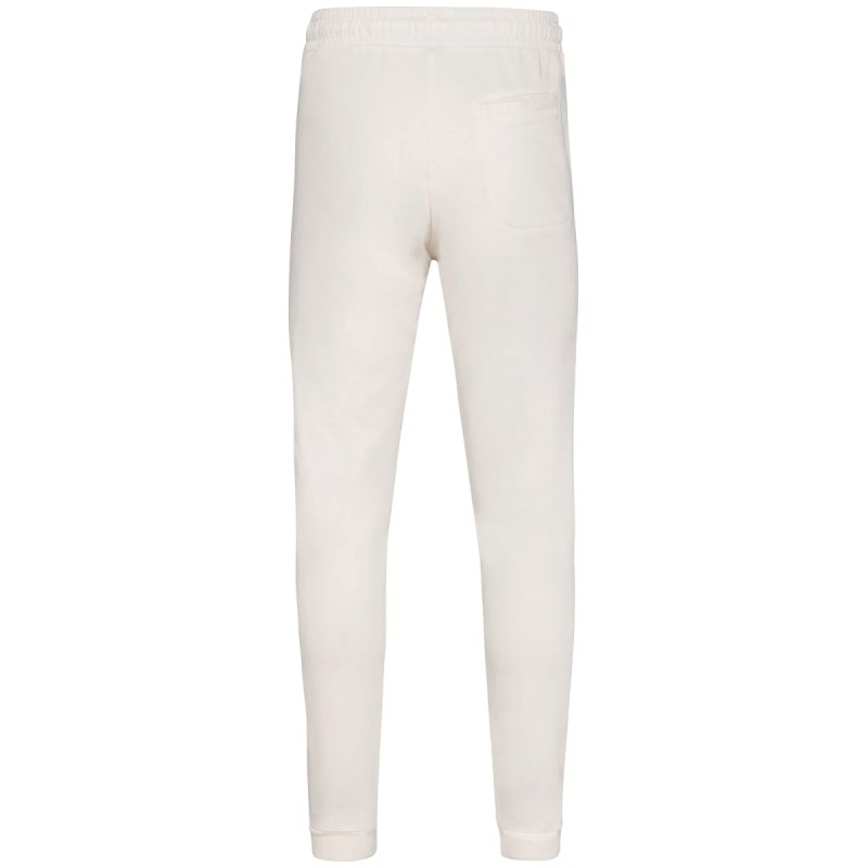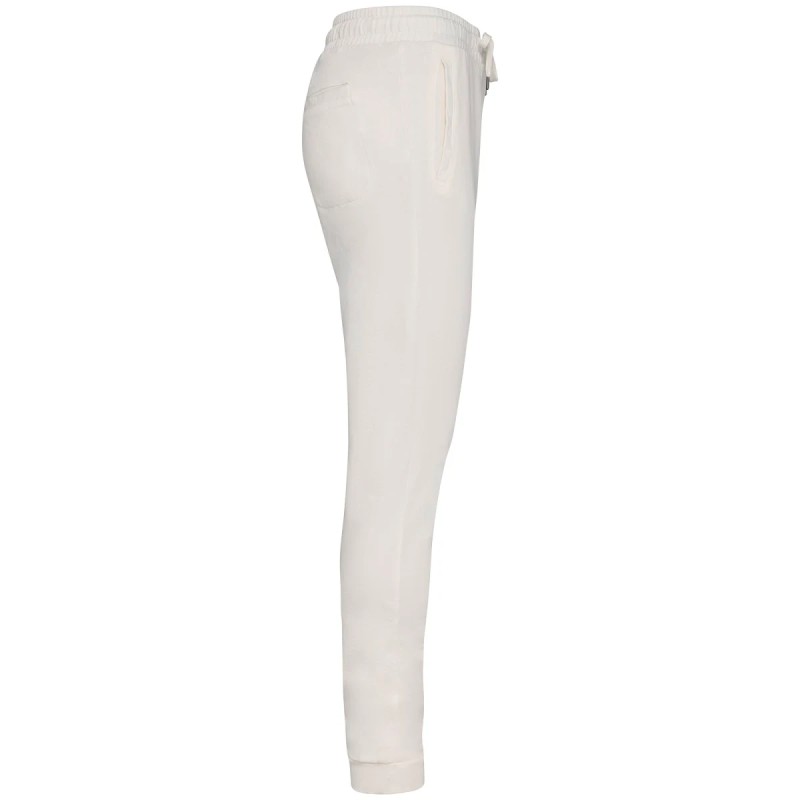 100% coton biologique. Fabriqué au Portugal. Coton peigné ringspun. Lavé aux enzymes. Intérieur molleton non gratté (French Terry). Deux poches latérales. Ceinture élastiquée avec cordon plat, œillets et embouts en métal recyclé. Bord côte 1 x 1 bas de jambes. Poches passepoilées avant et arrière. Vêtement teint après montage : les couleurs peuvent légèrement varier d'une pièce à l'autre.