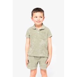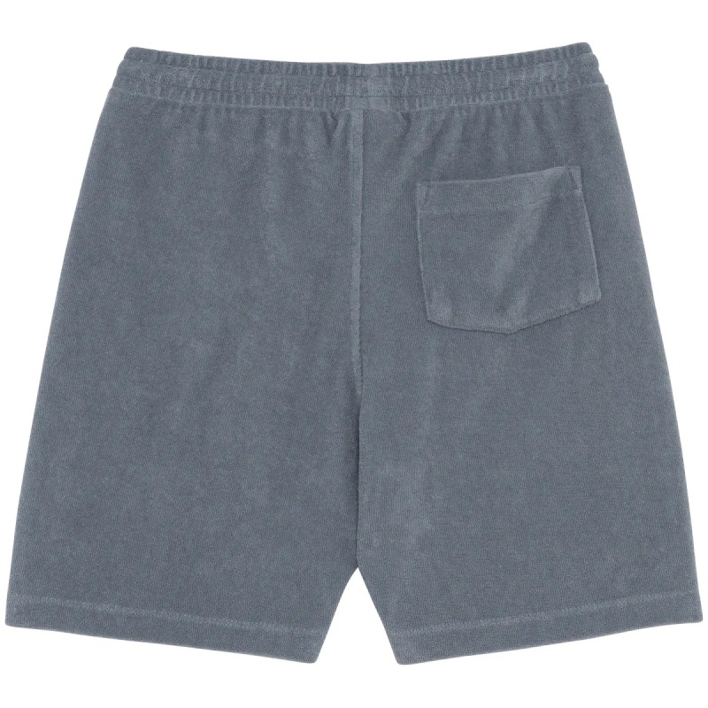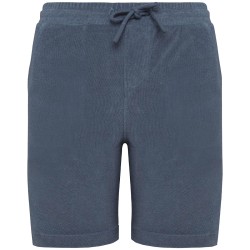 80% coton biologique / 20% polyester recyclé post-consumer. Fabriqué au Portugal. Coton peigné. Matière éponge. Lavé aux enzymes. Ceinture en matière principale avec taille élastiquée. Cordon de serrage à la taille avec embout en silicone ton sur ton. Fausse braguette fantaisie. Deux poches latérales à l'avant avec double surpiqûre à l'ouverture de poche. Poche plaquée dos, côté droit au porté. Ourlet double surpiqûre bas de vêtement.